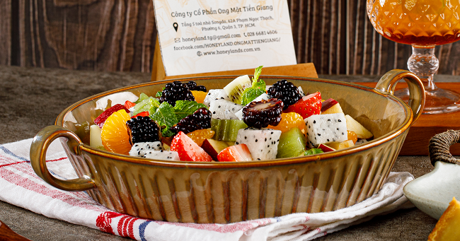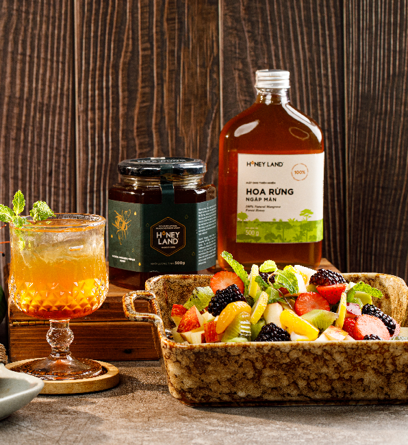 Những công thức chế bán salad trên thật Đơn giản và vô cùng dễ làm phải không nào? Honeyland chia sẻ đến bạn bí quyết giúp tăng thêm độ thơm ngon của Salad trái cây mật ong này: hãy sử dụng Mật Ong Hoa Rừng Ngập Mặn Honeyland - được thu mật từ hoa cây Sú, Vẹt, Mắm, Ô Rô ở khu vực rừng ngập mặn, do có đặc tính sống nửa nước nửa cạn trong điều kiện cực kỳ khắc nghiệt. Mật Ong Hoa Rừng Ngập Mặn Honeyland có hương vị thơm ngon, độc đáo, có chút vị mặn nhẹ của muối khoáng.