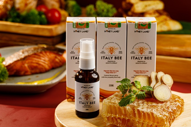 Chính vì những ưu điểm đó, HoneyLand đã cho ra dòng sản phẩm Keo Ong Xịt Họng ItalyBee HoneyLand - được sản xuất từ keo ong chứa hơn 70 hợp chất tốt cho sức khỏe, có tác dụng kháng khuẩn, hỗ trợ kháng virus và kháng viêm. Keo Ong Xịt Họng ItalyBee HoneyLand được thiết kế dạng xịt tiện dụng làm tăng khả năng tác dụng tại chỗ của keo ong và an toàn tuyệt đối cho sức khỏe khi không chứa chất bảo quản, không hóa chất tổng hợp, không thuốc kháng sinh và không cồn.