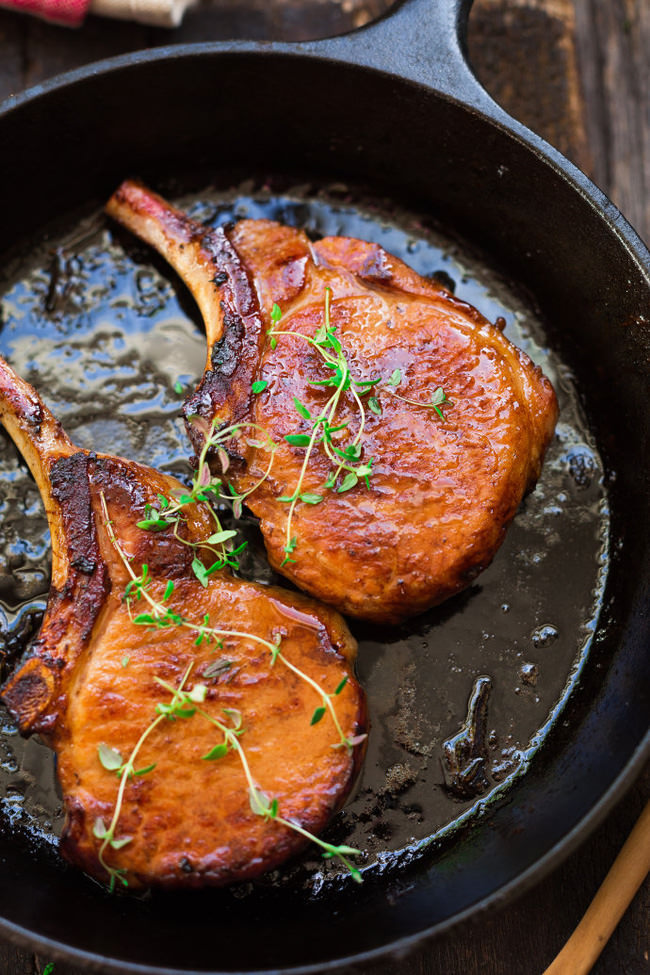 Lấy chảo chiên để già lửa cho nóng chảo, bỏ ít dầu, hạ lửa nhỏ, bỏ thịt cốt lết vào chiên, lật mặt liên tục lúc ban đầu để tránh tình trạng cháy xém nhanh do ướp với mật ong trước đó, sau đó khi 2 mặt đã hơi chín tới, tiếp tục chiên tuỳ theo độ giòn khô hoặc ẩm thịt mà bạn muốn, trong quá trình đó, liên tục châm thêm phần sốt ướp còn lại vào.