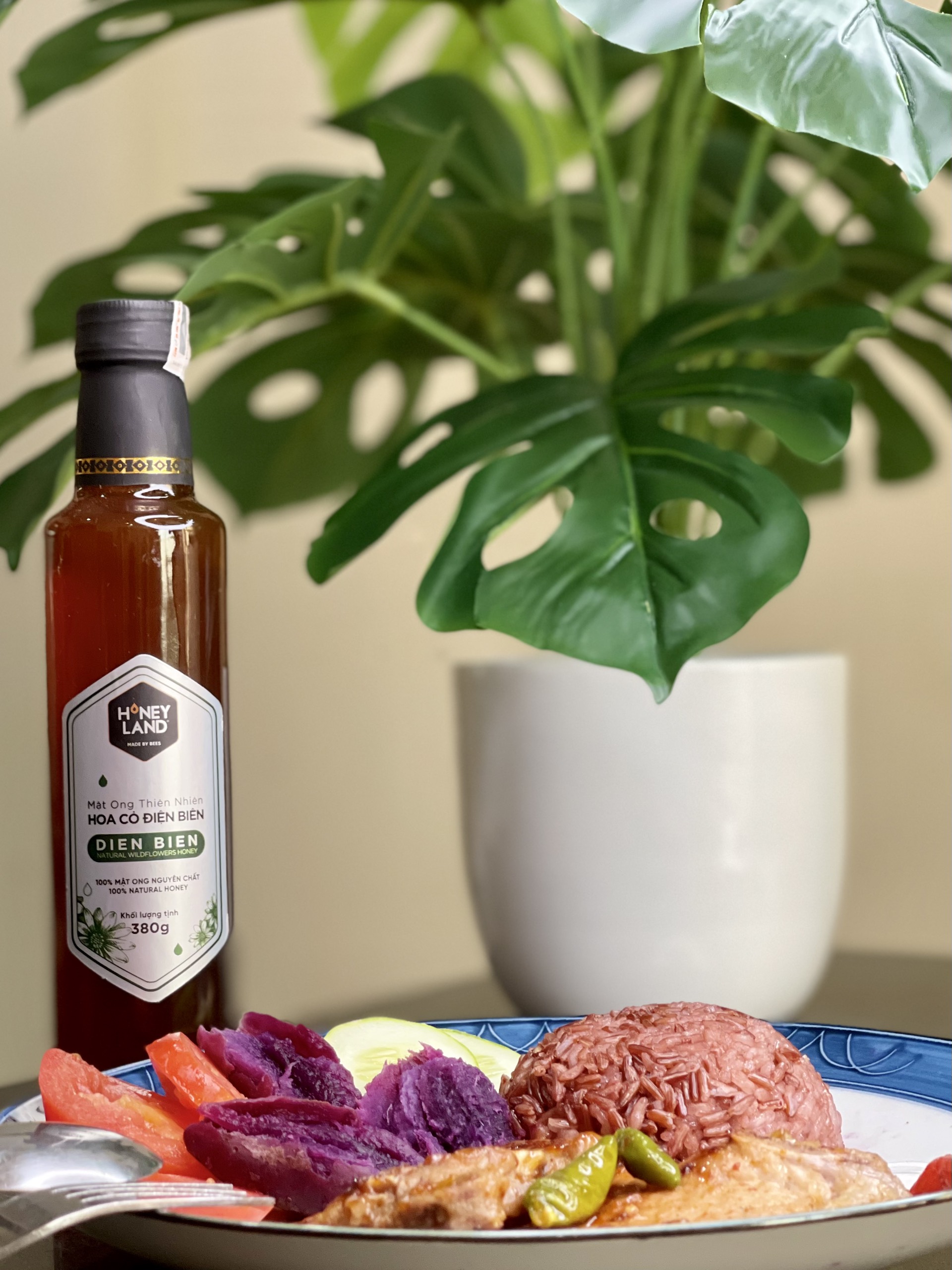 Và, trong công thức trên, Honeyland gợi ý đến bạn dòng mật ong Thiên nhiên hoa cỏ Điện Biên - Mật ong thiên nhiên hoa cỏ Điện Biên được thu hoạch từ vùng hoa tự nhiên như dã quỳ, hoa ban, hoa đào dại, hoa ngũ sắc...tại tỉnh Điện Biên thuộc vùng Tây Bắc Bộ. Mật ong có vị thơm ngon, ngọt dịu, có màu hổ phách như khí trời thanh khiết tại vùng núi nơi đây, rất thích hợp pha nước, nấu ăn, giúp nêm nếm gia vị thêm ngon và dậy mùi đem đến sự hấp dẫn đối với khẩu vị của cả gia đình bạn!