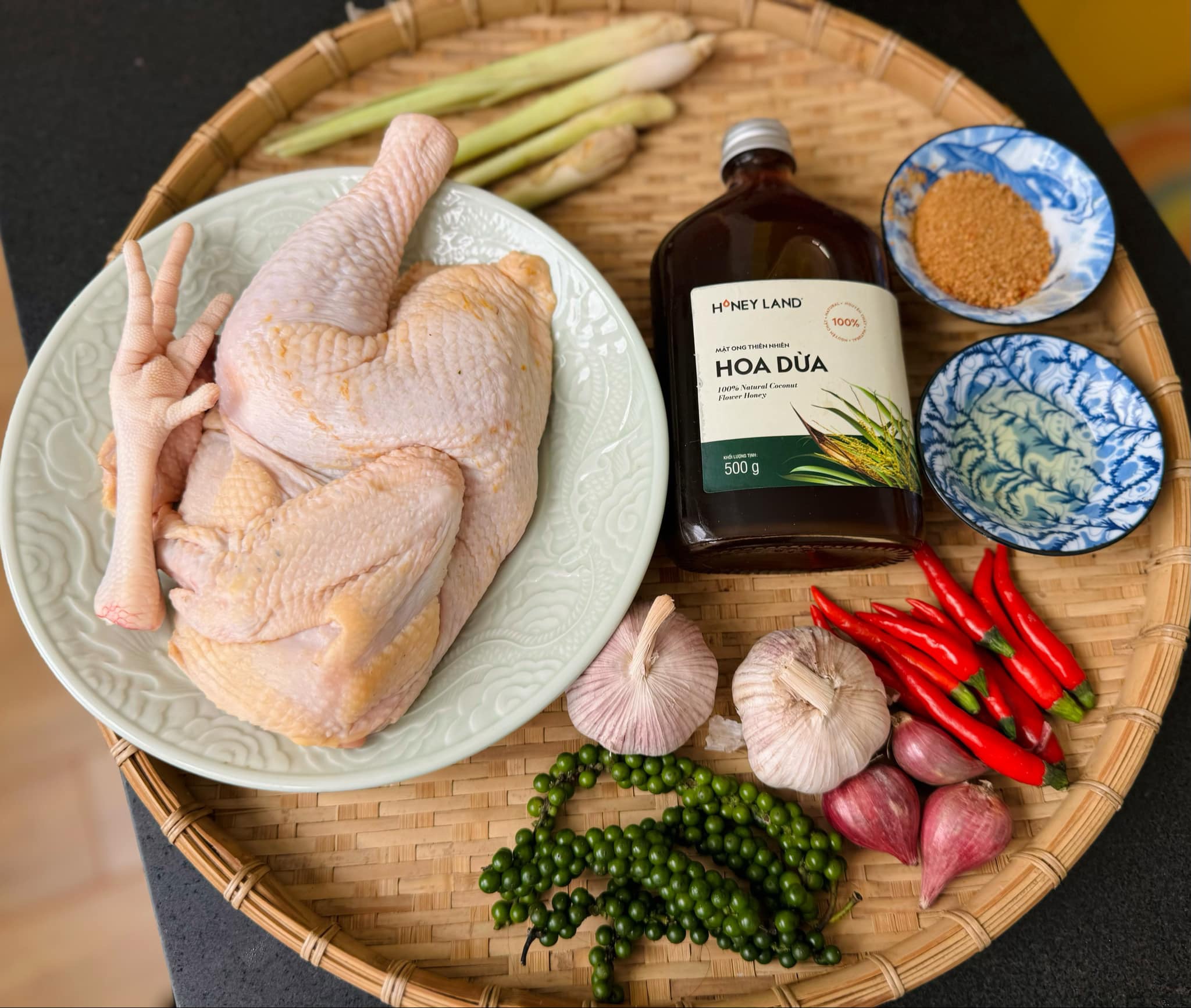 Gia vị ướp gà nướng mật ong: Mật ong, tiêu , muối tôm, dầu ăn