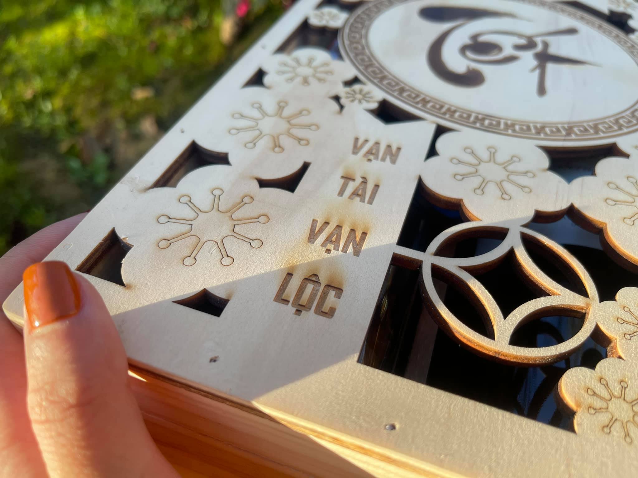 Tất cả nguyên liệu trong Hộp quà Tết Tân Sửu đều được chọn lọc kĩ càng, đi kèm là hộp gỗ đựng được thiết kế sang trọng, song hành là những họa tiết Tết tinh tế, được các gia công chạm khắc một cách tỉ mỉ và tinh xảo.