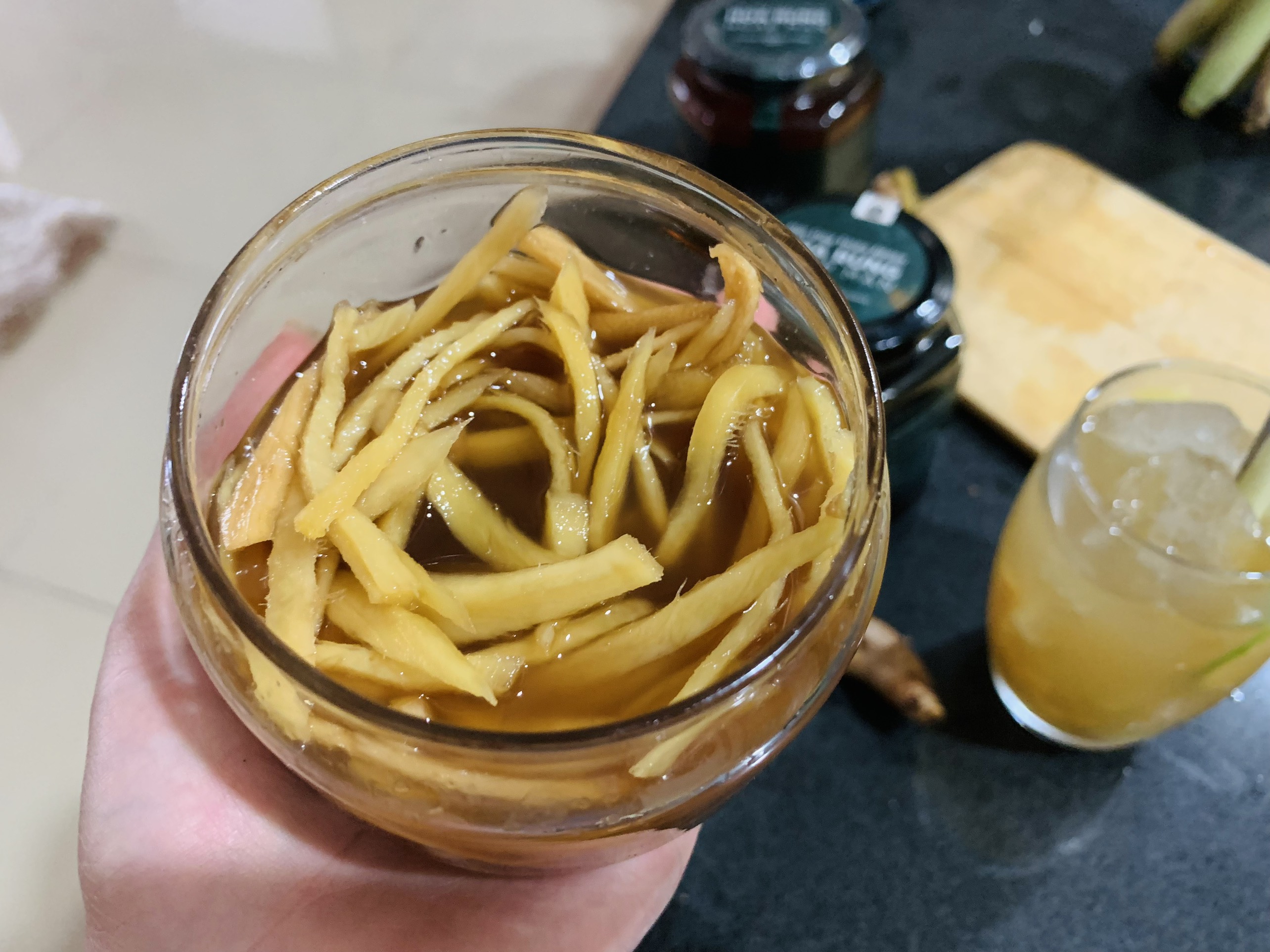 Bước 3: Ngâm gừng mật ong cho đến khi thấy miếng gừng quắt lại là có thể sử dụng được.