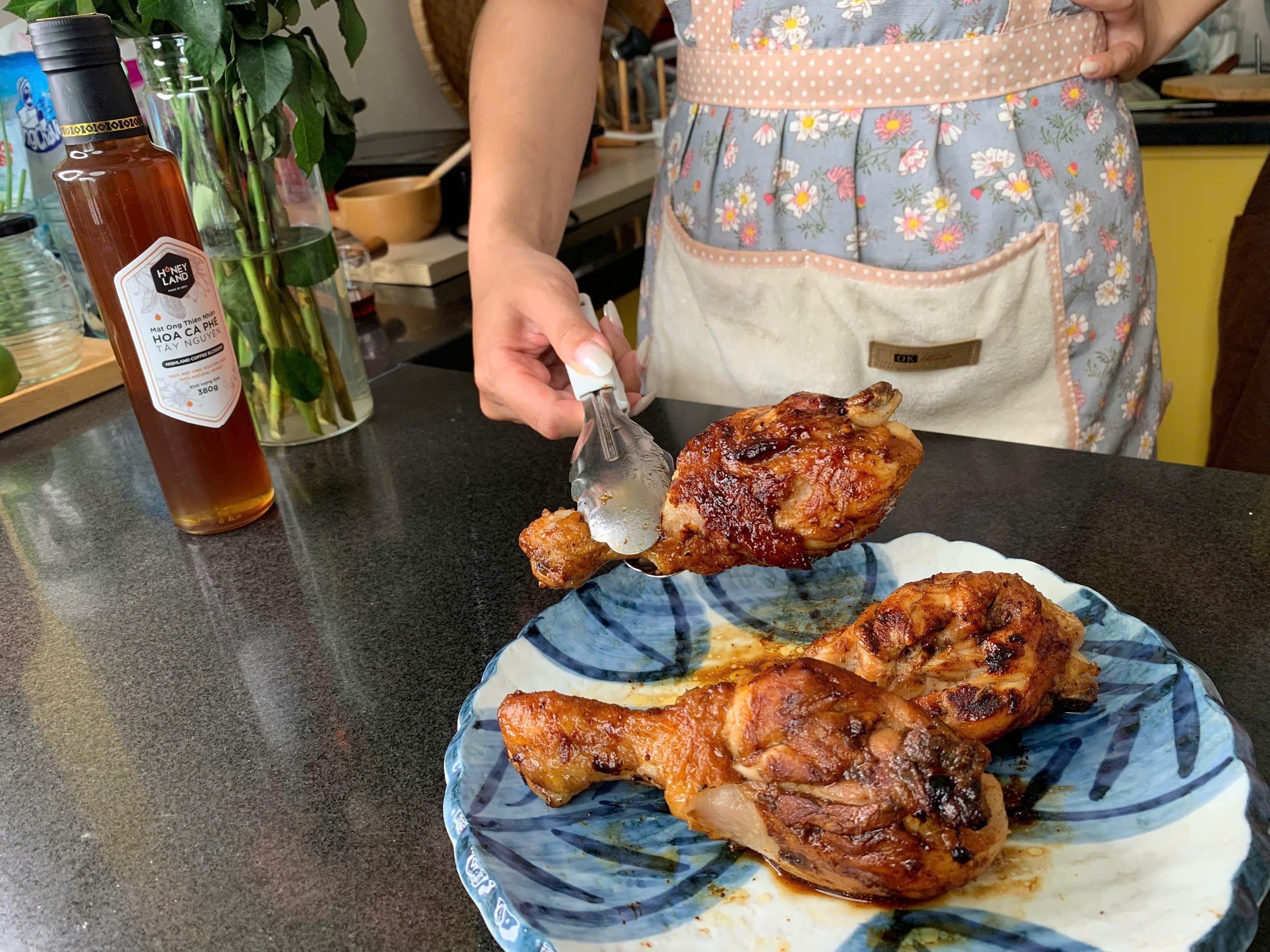 Khi kết hợp mật ong hoa cà phê – loại mật có hương thơm nhẹ, vị ngọt thanh đặc trưng từ vùng đất Tây Nguyên – với đùi gà mềm mọng, món ăn không chỉ dậy hương mà còn có độ ngọt dịu tự nhiên, giúp cân bằng vị béo từ da gà, tạo nên sự hòa quyện tinh tế giữa các tầng vị. Đây là món ăn không quá cầu kỳ, dễ thực hiện tại nhà nhưng vẫn đủ sang trọng cho các bữa tiệc hoặc bữa cơm gia đình cuối tuần.