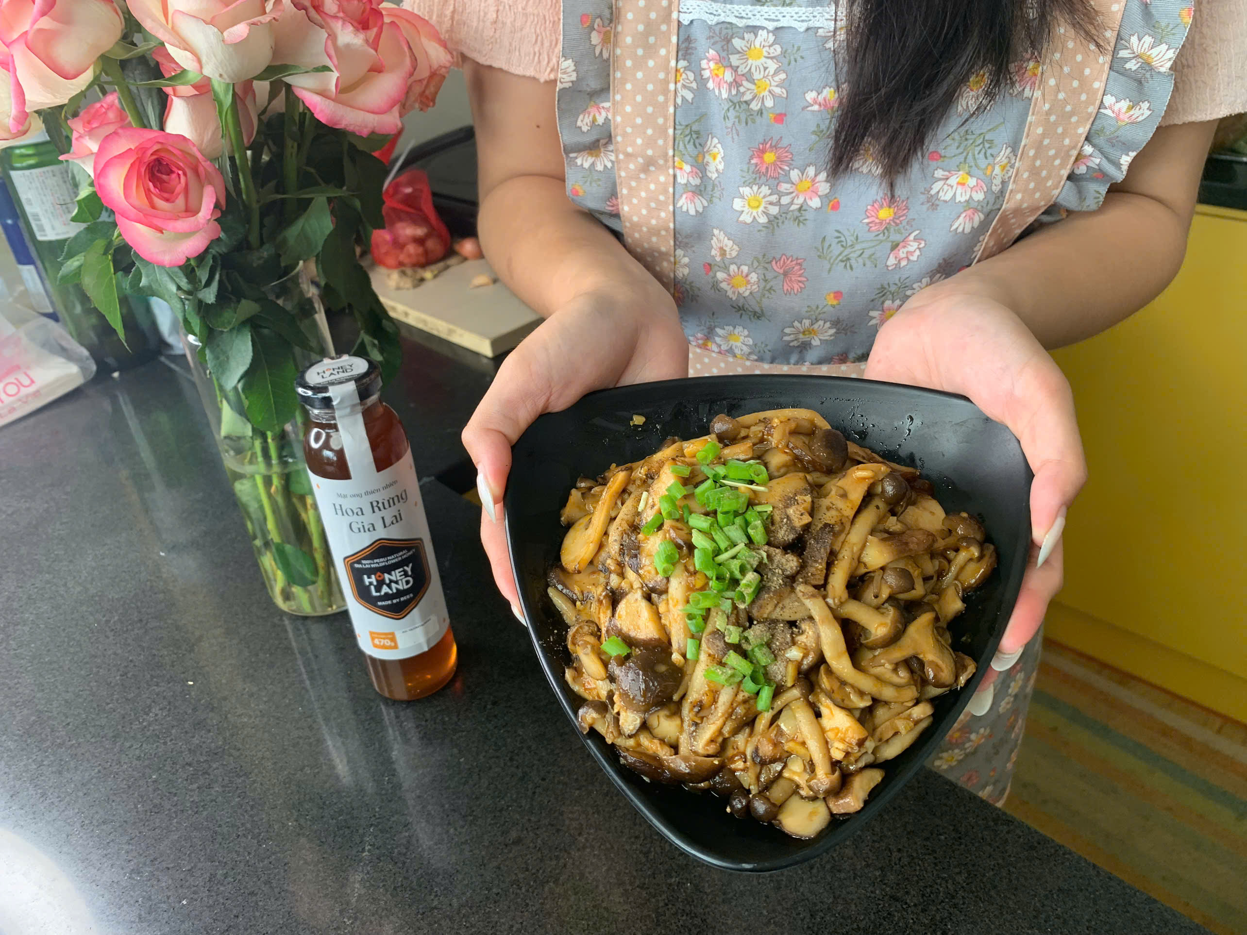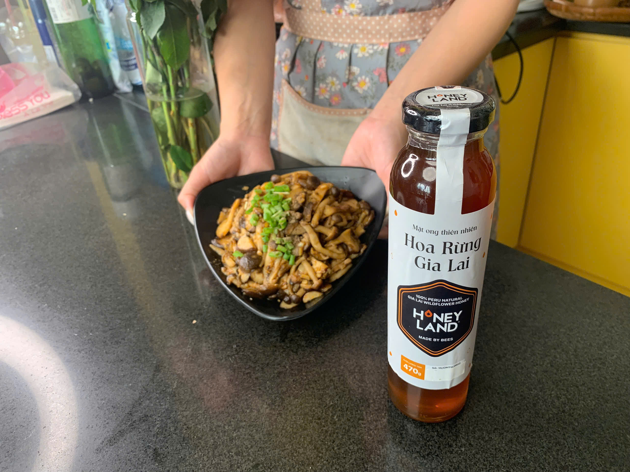 Đặc biệt, mật ong hoa rừng Gia Lai với hương thơm tự nhiên, vị ngọt thanh dịu giúp làm dậy mùi và cân bằng vị cho món ăn. Đây là món lý tưởng để ăn kèm với cơm trắng, salad hoặc dùng như món khai vị trong các bữa tiệc chay hay đãi khách.