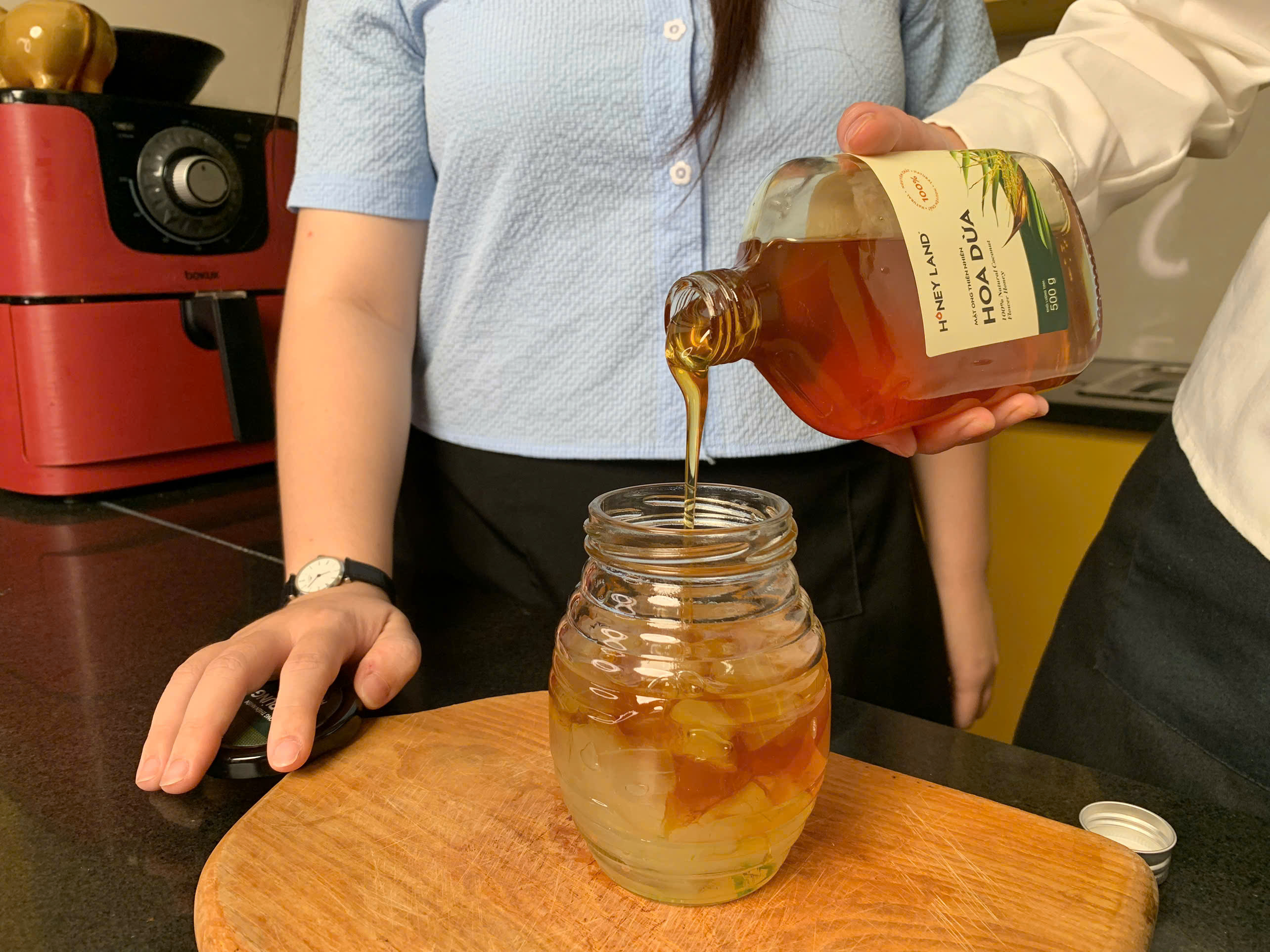 Nha đam ngâm mật ong là sự kết hợp nhẹ nhàng giữa vị giòn mát của nha đam và hương ngọt dịu, thanh thoát từ mật ong hoa dừa – một loại mật ong nguyên chất, được khai thác từ rừng dừa tự nhiên. Không cần chế biến cầu kỳ, món ngâm này dễ dàng thực hiện ngay tại nhà và có thể trở thành thức uống nhẹ hoặc món topping thú vị cho các món tráng miệng. Cùng HONEYLAND bắt tay làm ngay một hũ nha đam ngâm mật ong vừa ngon vừa đẹp mắt nhé!