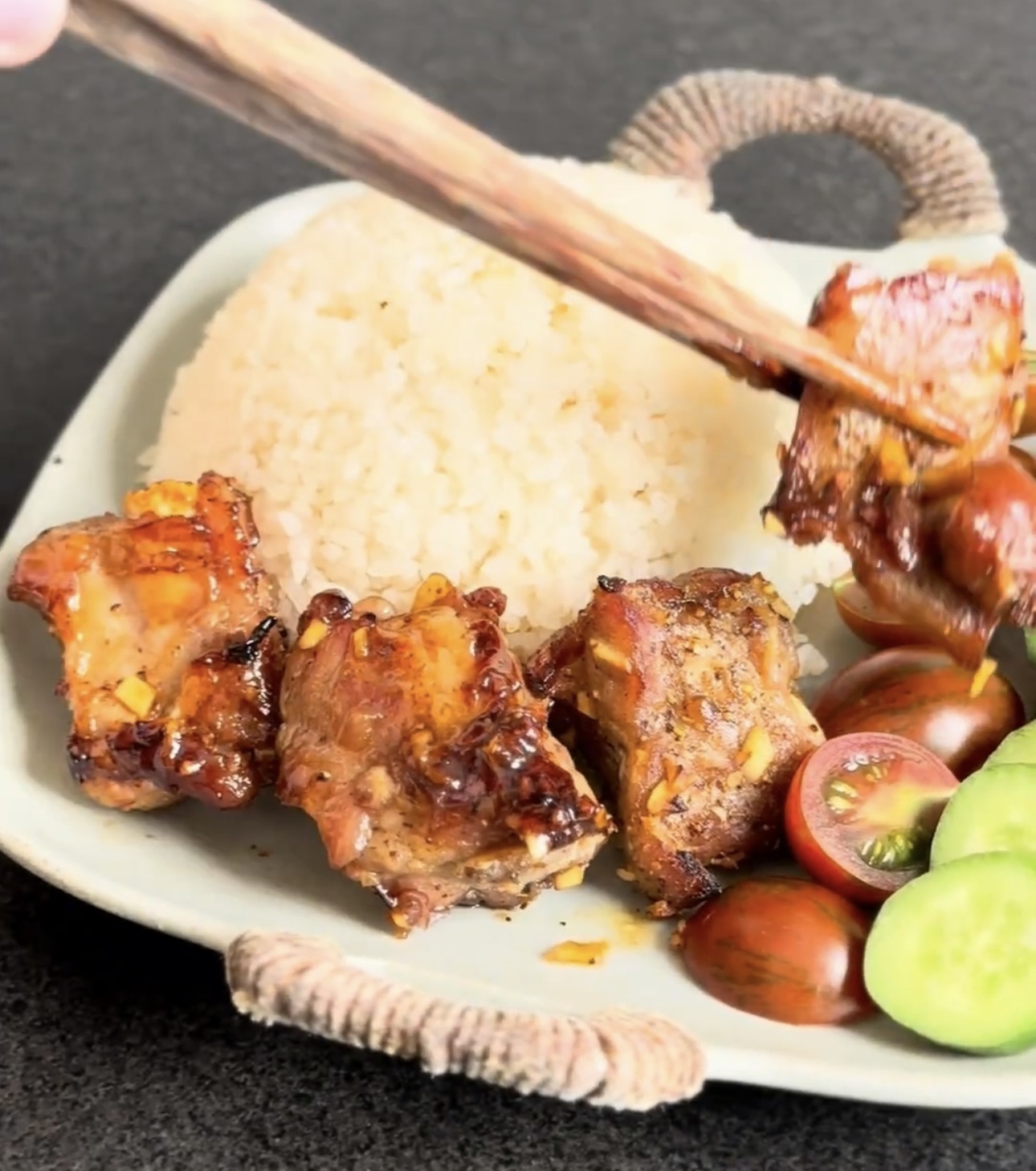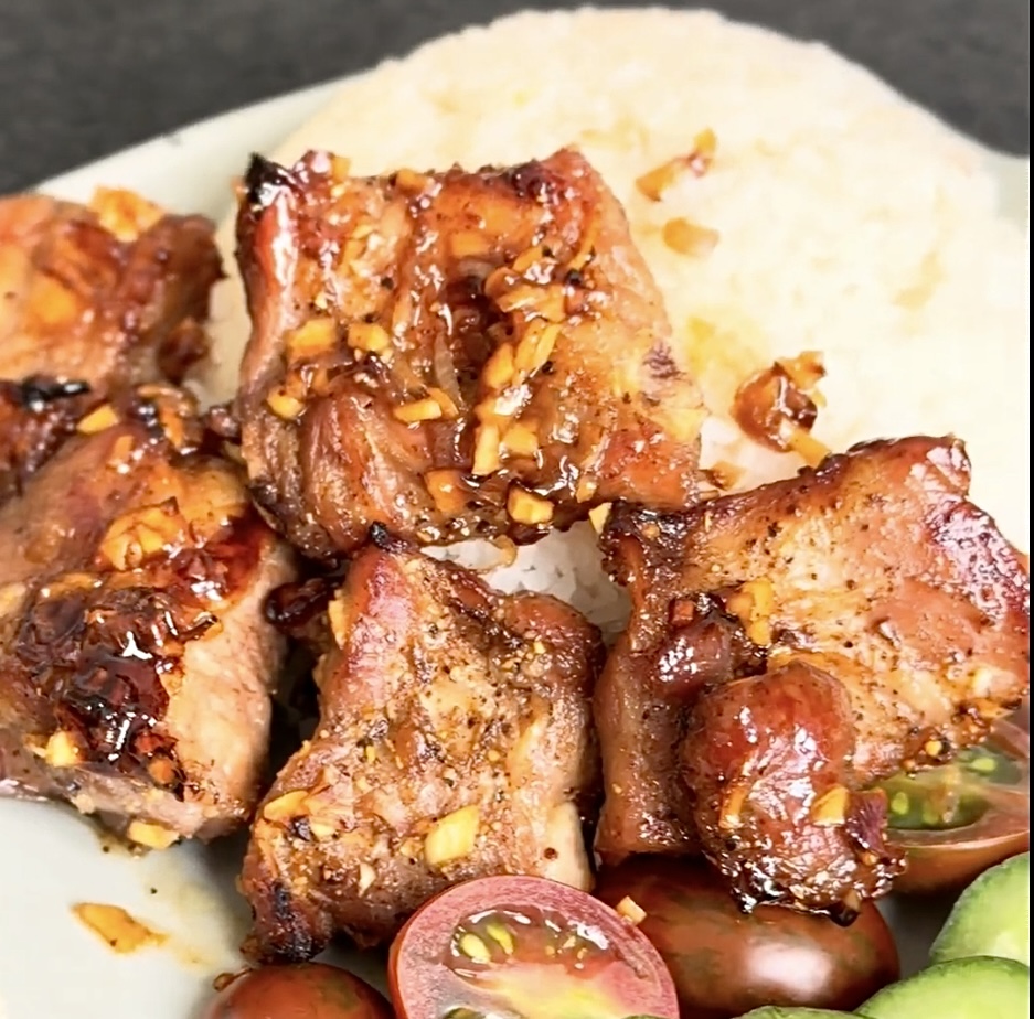 Món sườn nướng mật ong là sự kết hợp hoàn hảo giữa sự tươi ngon của sườn non và hương vị đậm đà từ các loại gia vị. Miếng sườn mềm ẩm bên trong, lớp vỏ ngoài vàng ươm xém nhẹ thơm nức mũi, ăn kèm cơm trắng thì ngon hết ý.