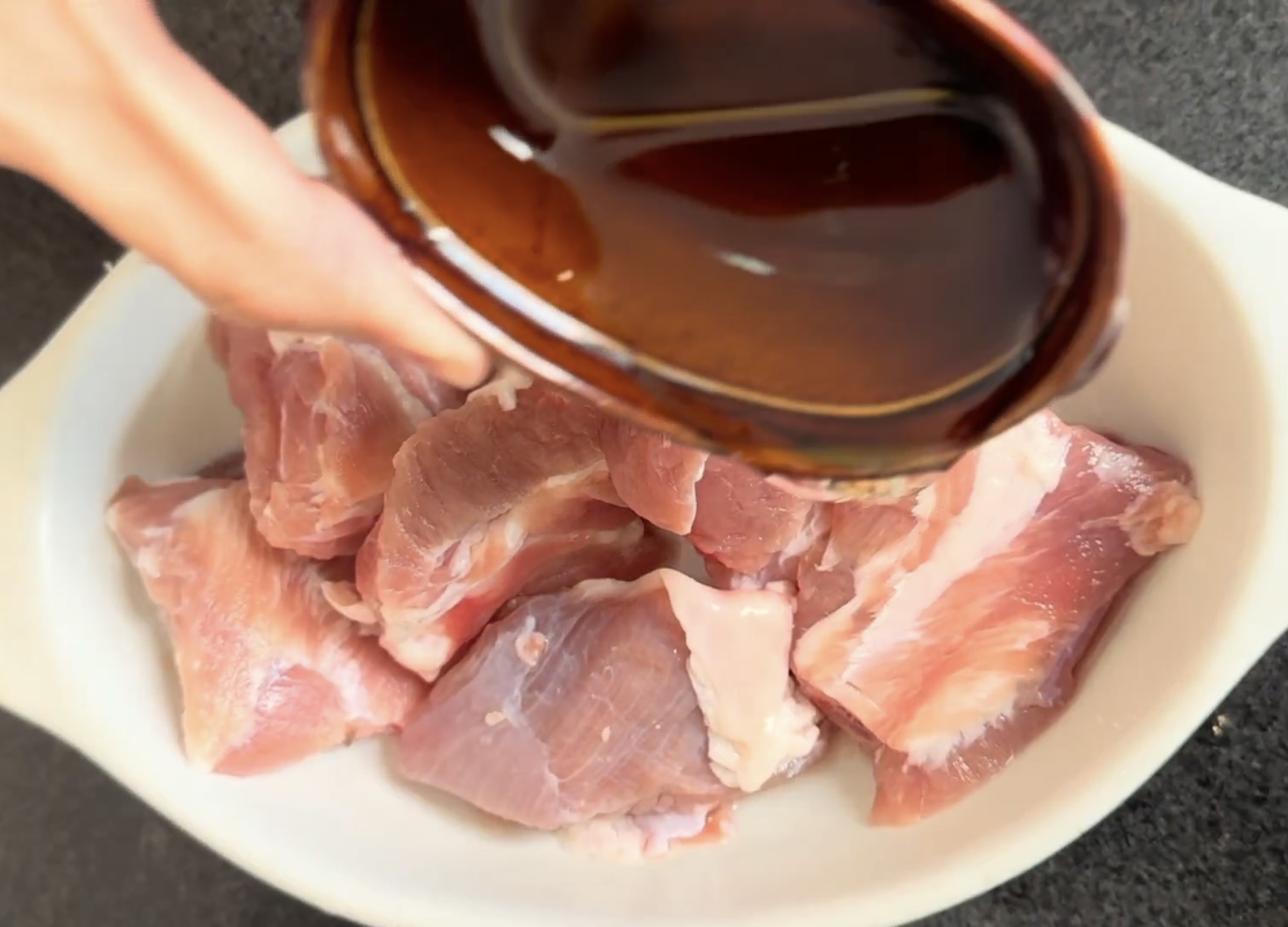 Cho sườn vào hỗn hợp, trộn đều để sườn thấm gia vị.