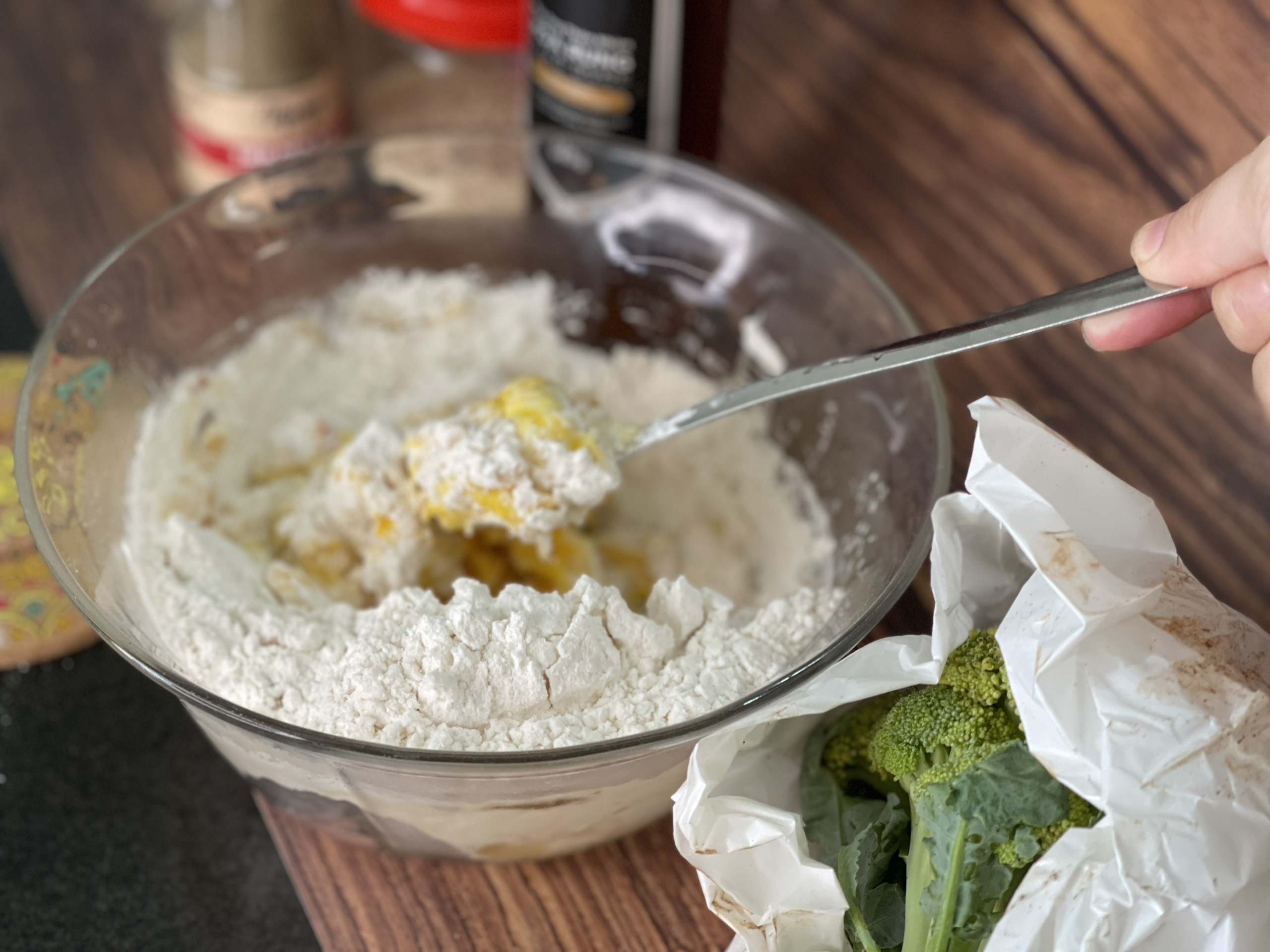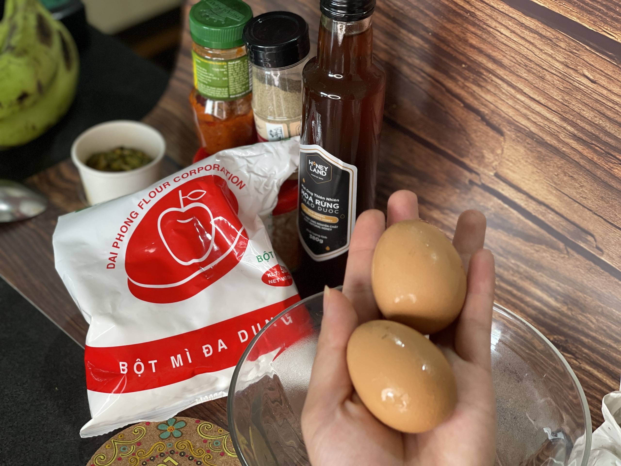 Nguyên liệu đơn giản, bột mì, trứng, súp lơ, gia vị và mật ong