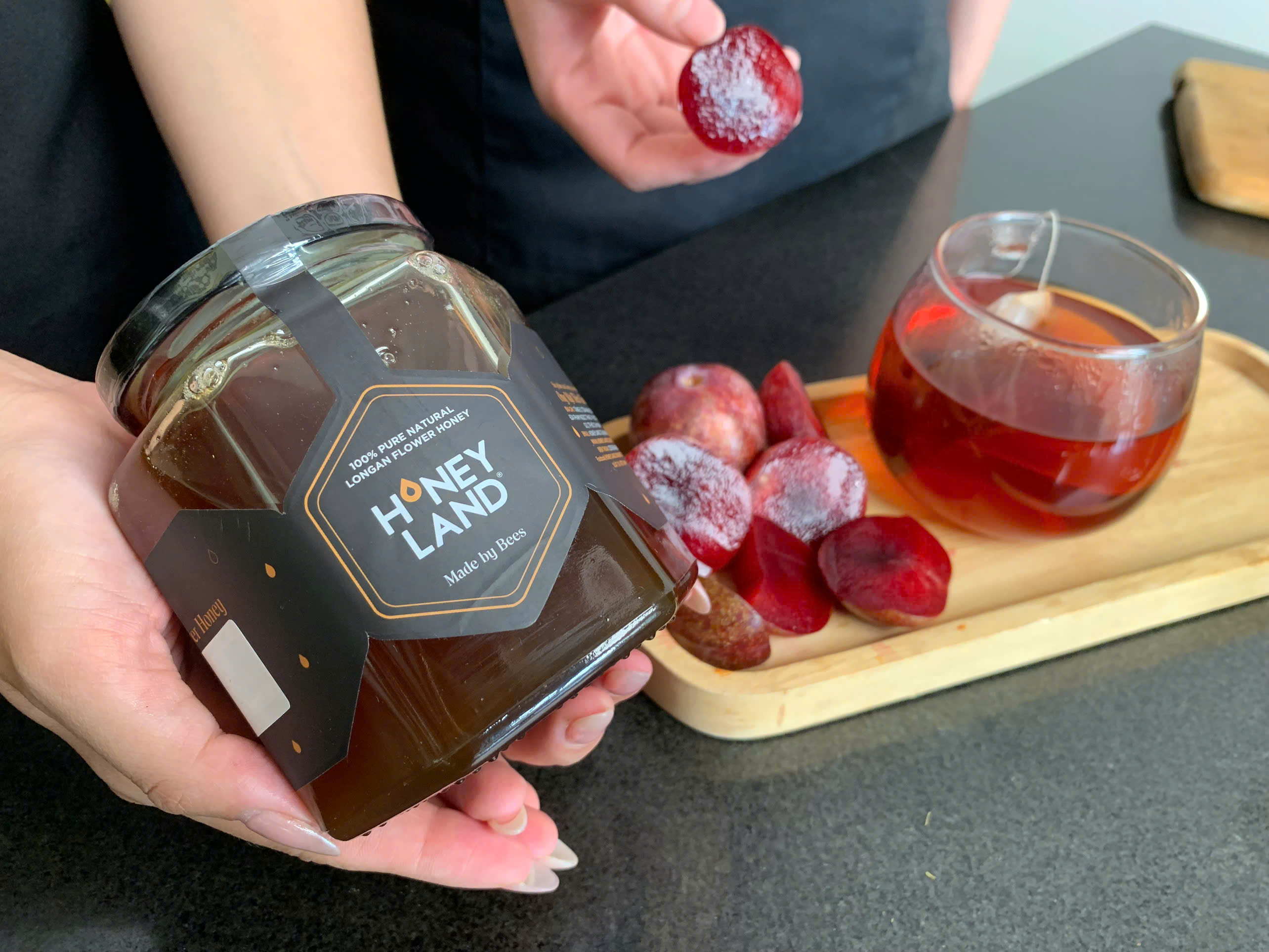 Món trà này không chỉ giúp bạn giải khát tức thì, mà còn hỗ trợ tiêu hóa, thanh lọc cơ thể và bổ sung chất chống oxy hóa từ trái mận và trà. Mật ong hoa nhãn HONEYLAND giúp tăng hương vị tự nhiên, mang lại vị ngọt nhẹ, không gắt, và rất tốt cho cổ họng, hệ miễn dịch.