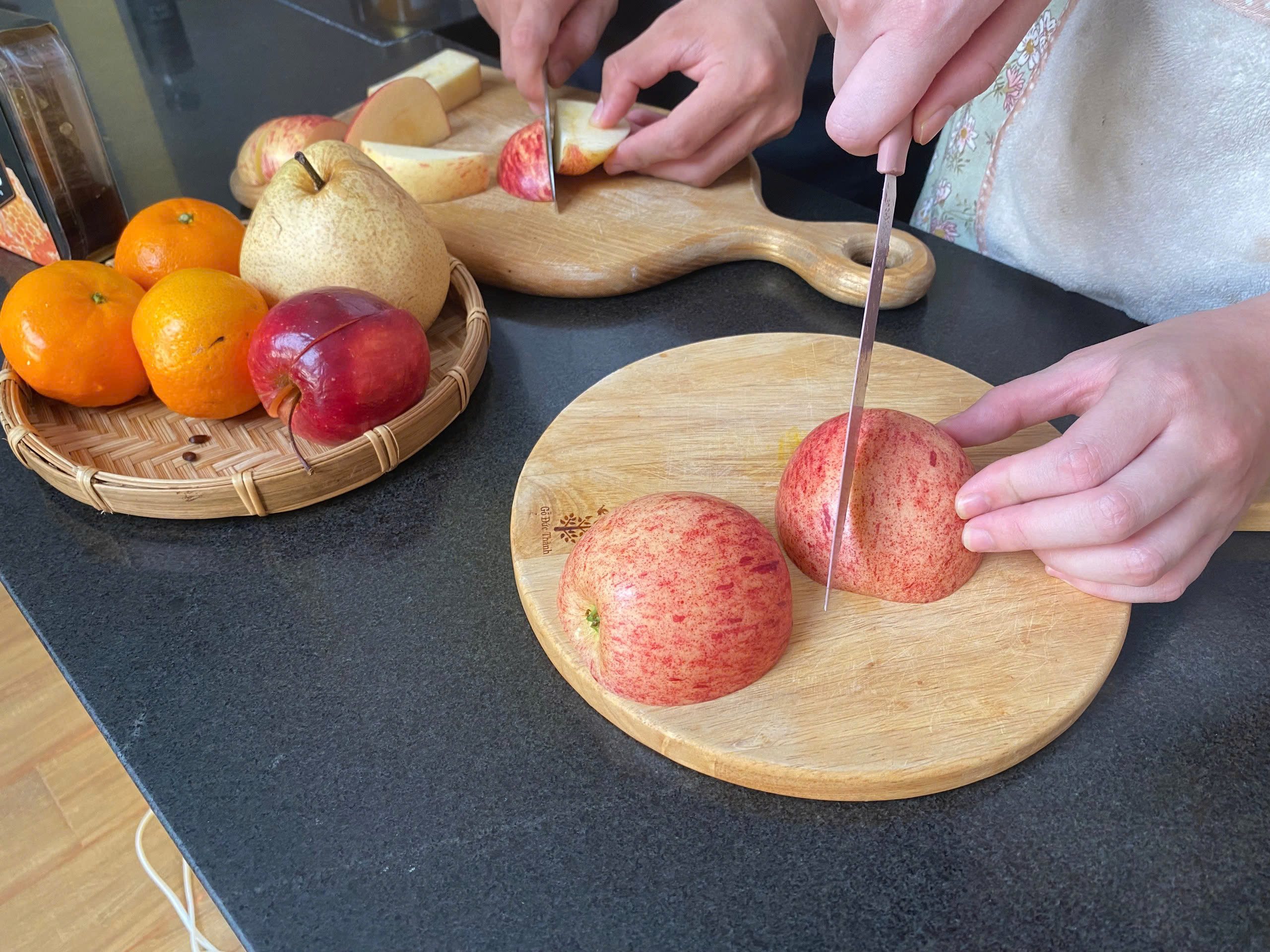 Táo: Cắt táo thành những miếng nhỏ vừa ăn, có thể giữ lại vỏ để tăng thêm độ giòn và màu sắc cho món ăn.