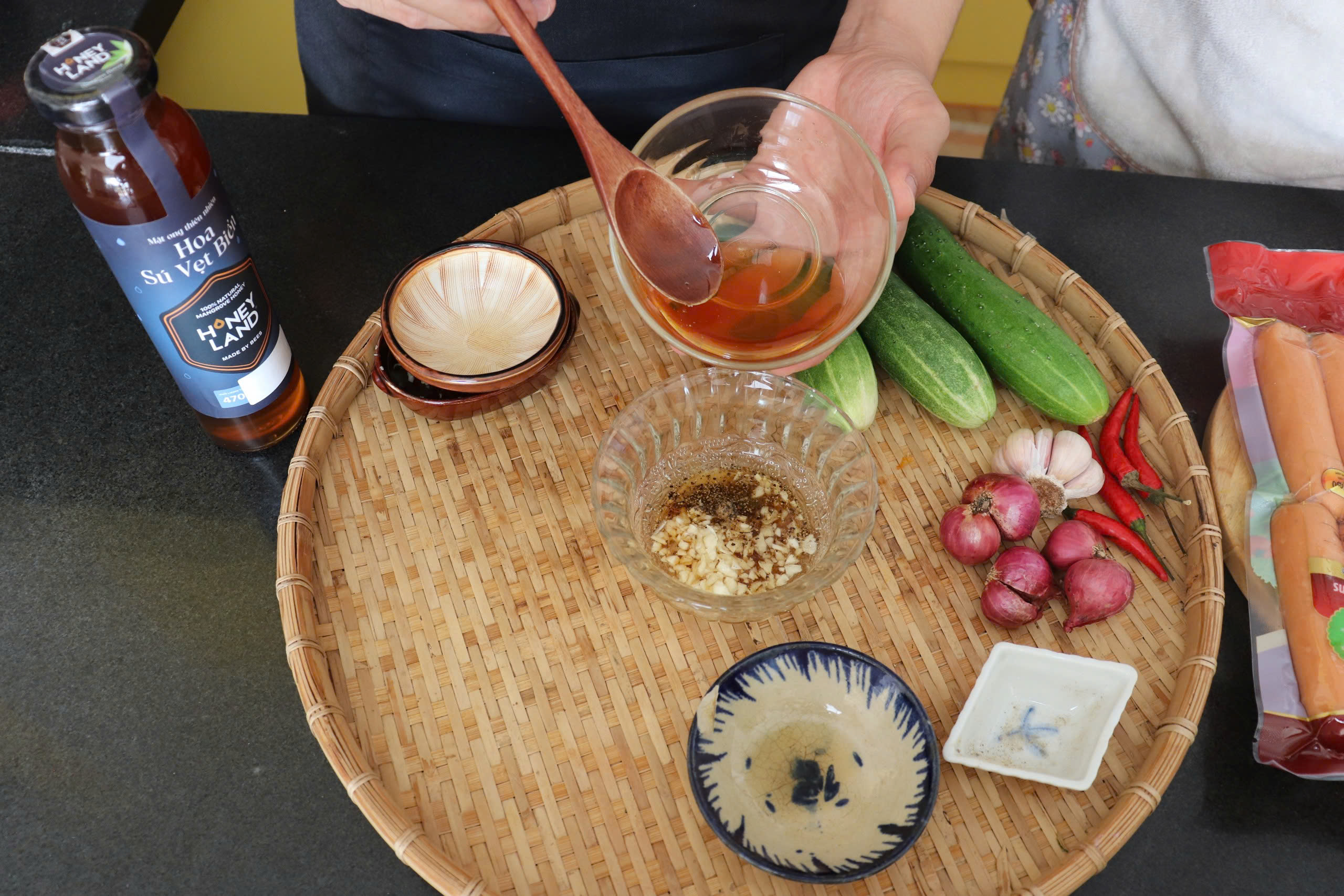 Để làm sốt mật ong, bạn chỉ cần cho mật ong vào bát, kết hợp cùng tỏi băm nhuyễn, tiêu, muối và một ít nước mắm. Trộn đều các nguyên liệu cho đến khi hỗn hợp hòa quyện vào nhau, tạo nên một lớp sốt đậm đà, thơm ngon.