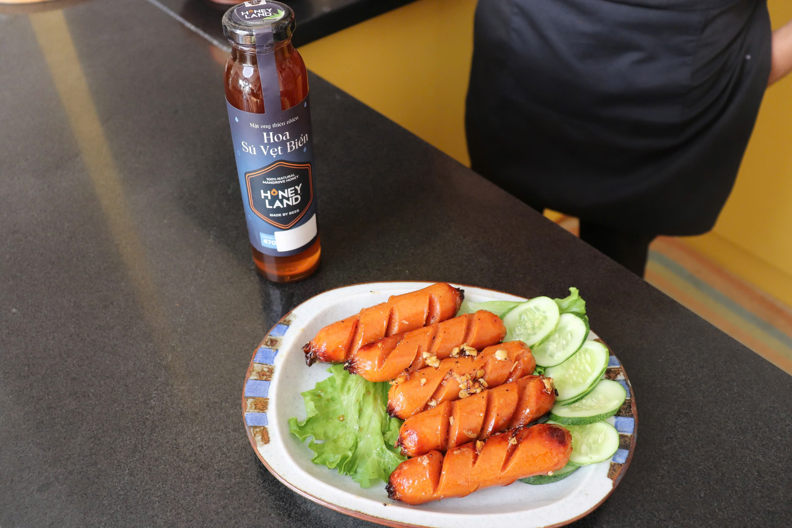 Bật mí, Mật ong hoa sú vẹt biển HONEYLAND chính là yếu tố quan trọng tạo nên hương vị đặc trưng cho món xúc xích nướng. Mật ong này được chiết xuất từ hoa sú vẹt biển, một loại cây thân gỗ có khả năng chịu nước mặn và sinh trưởng ở các vùng ven biển. Vị ngọt ngào của mật ong hoa sú vẹt biển HONEYLAND pha lẫn chút vị mặn đặc trưng của biển sẽ mang đến một hương vị hoàn toàn mới cho món xúc xích nướng. Khi bạn sử dụng mật ong hoa sú vẹt biển HONEYLAND để làm sốt nướng xúc xích, món ăn không chỉ thơm ngon mà còn mang lại một sự hòa quyện tuyệt vời giữa vị ngọt và vị mặn, giúp kích thích vị giác.