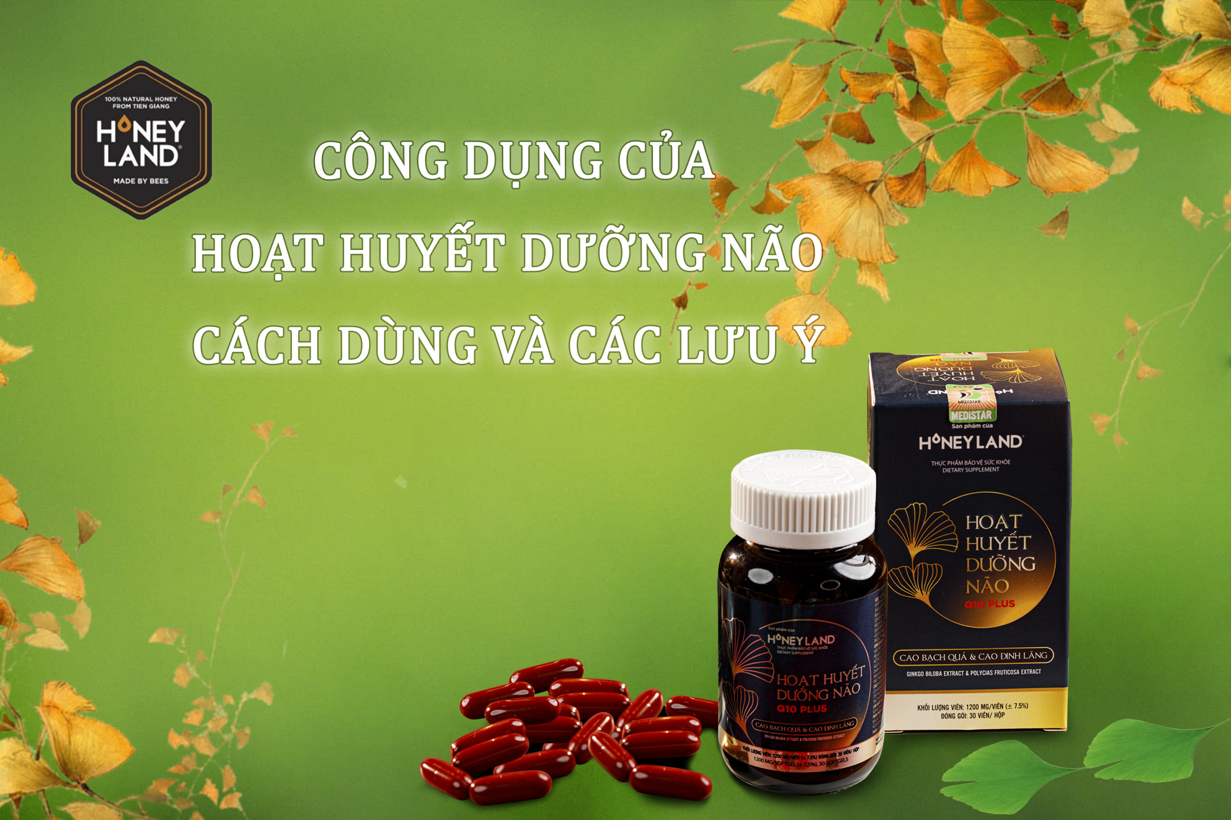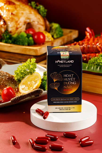 Viên uống Hoạt Huyết Dưỡng Não Q10 Plus HoneyLand - sự kết hợp của nhiều loại thảo mộc quý, giúp cải thiện chức năng não bộ.