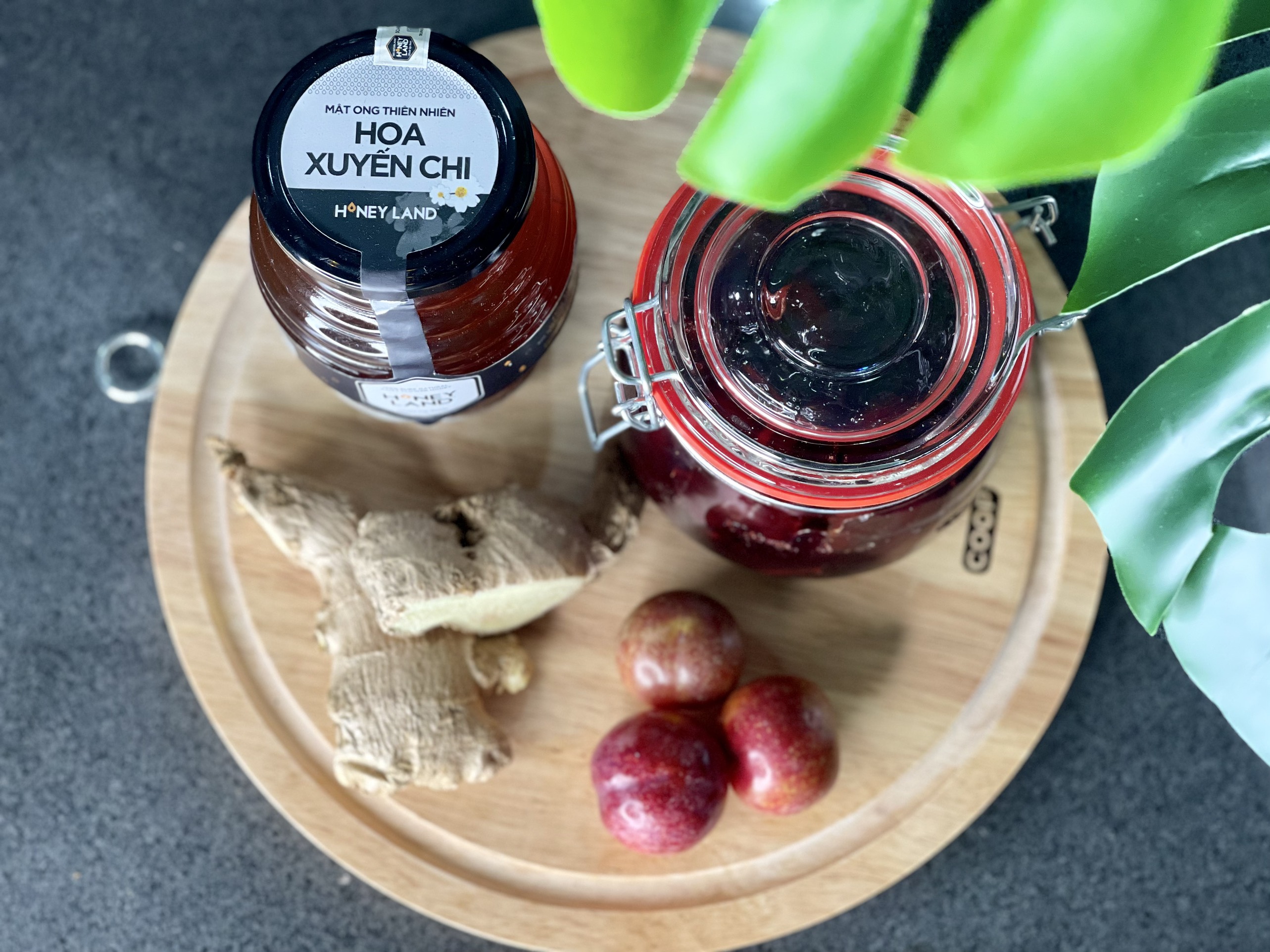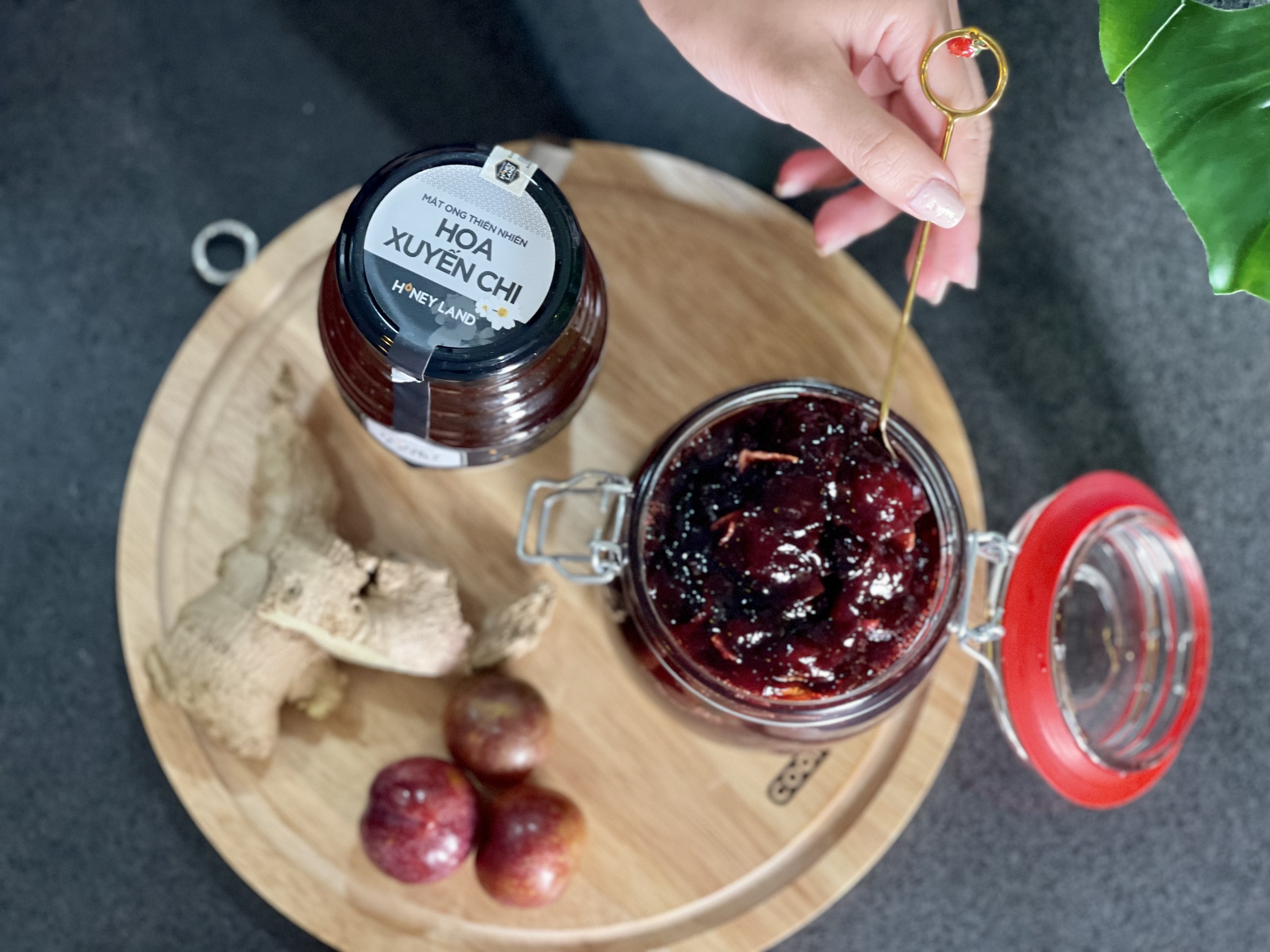 Honeyland gợi ý dòng Mật ong Hoa Xuyến Chi thanh ngọt, kết hợp làm mứt mận sẽ đem tới sự thơm ngon dẻo dai cho món mứt mà không lấn át đi mùi hương từ chính trái mận và củ gừng, chúc bạn sẽ thành công với công thức ăn vặt thực dưỡng này!