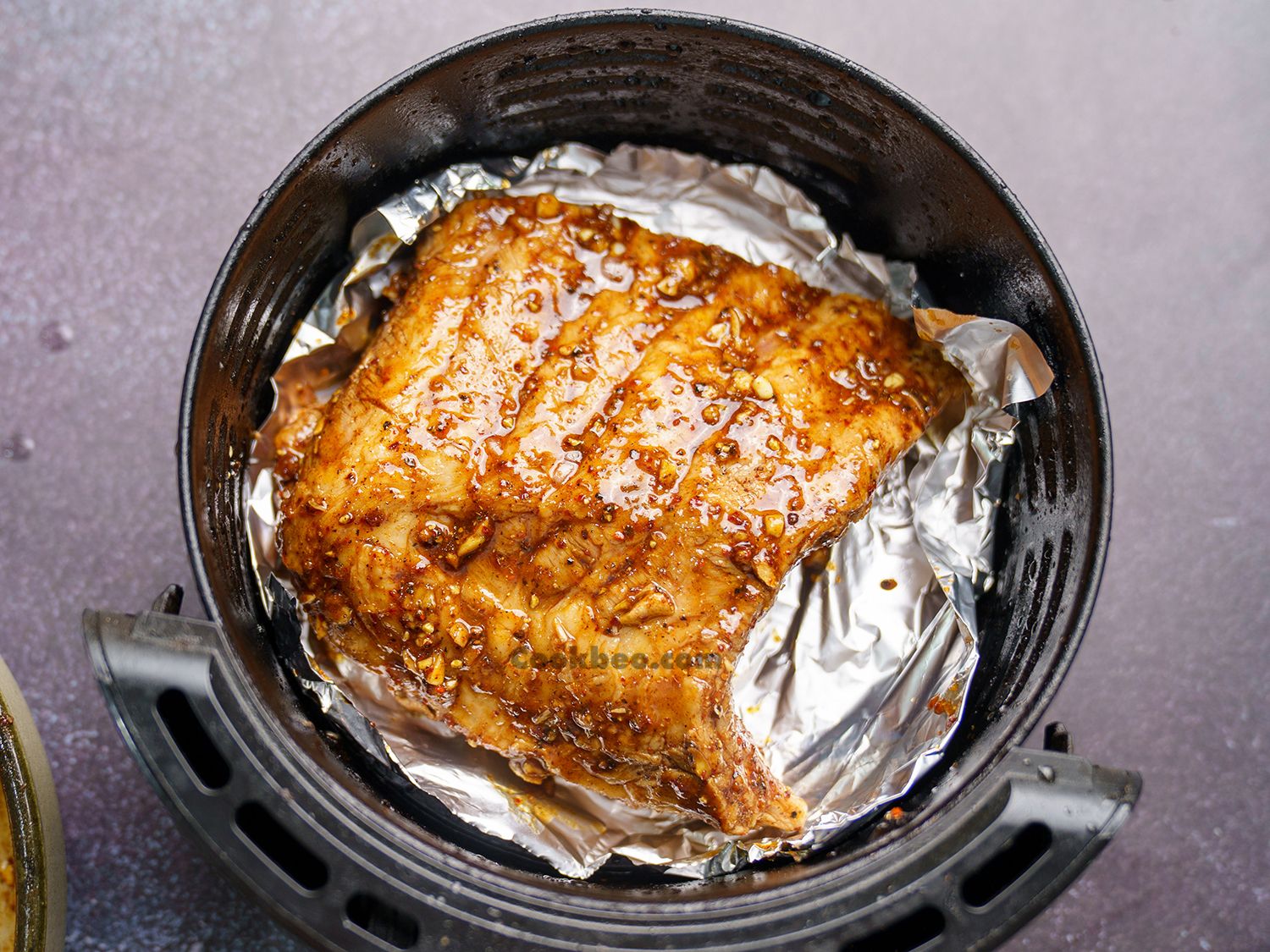 Bạn hãy lót một lớp giấy bạc xung quanh để tránh sườn bị cháy xém nhé!