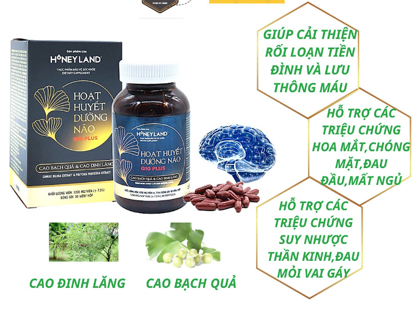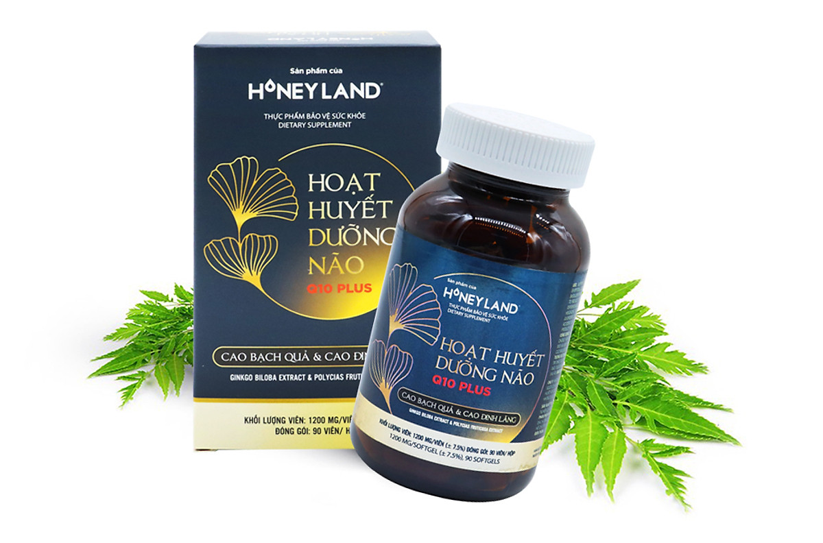 Viên uống hoạt huyết dưỡng não Q10 Plus của thương hiệu HoneyLand chứa thành phần thiên nhiên chính từ cao bạch quả và cao đinh lăng, được sản xuất trên dây chuyền công nghệ tiên tiến, được xem là giải pháp hữu hiệu giúp tăng cường tuần hoàn máu não, hỗ trợ phòng các bệnh lý liên quan đến rối loạn tuần hoàn não.