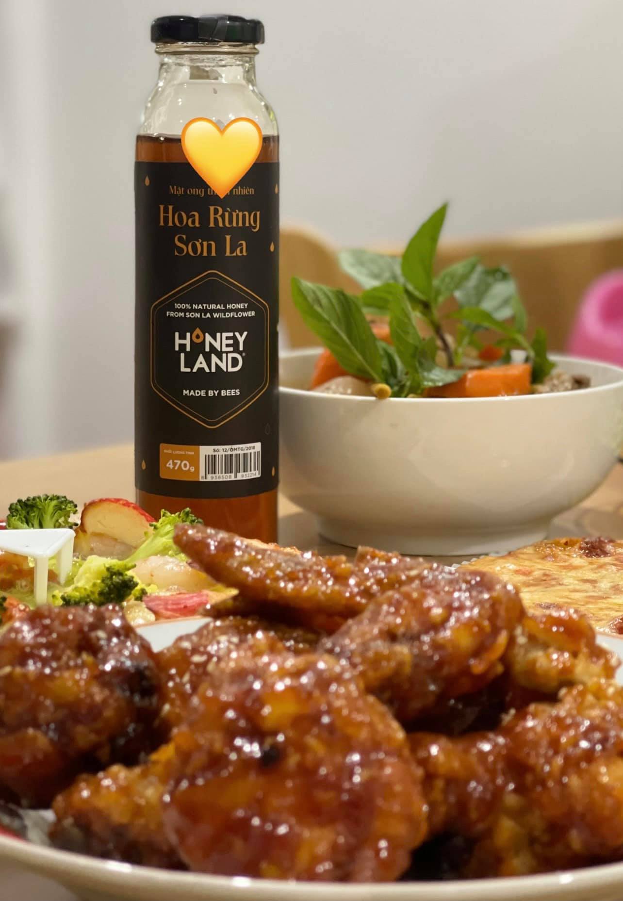 Những miếng gà có màu vàng óng, thịt gà thì mềm ngọt với lớp da giòn dai, tất cả được hòa quyện với nước xốt Mật ong hoa rừng Sơn La HoneyLand đậm đà sẽ khiến cả nhóm bạn xuýt xoa, bởi hương vị ngọt hòa quyện vừa đủ, giúp món ăn không béo cũng không ngấy, thơm ngon đúng điệu.