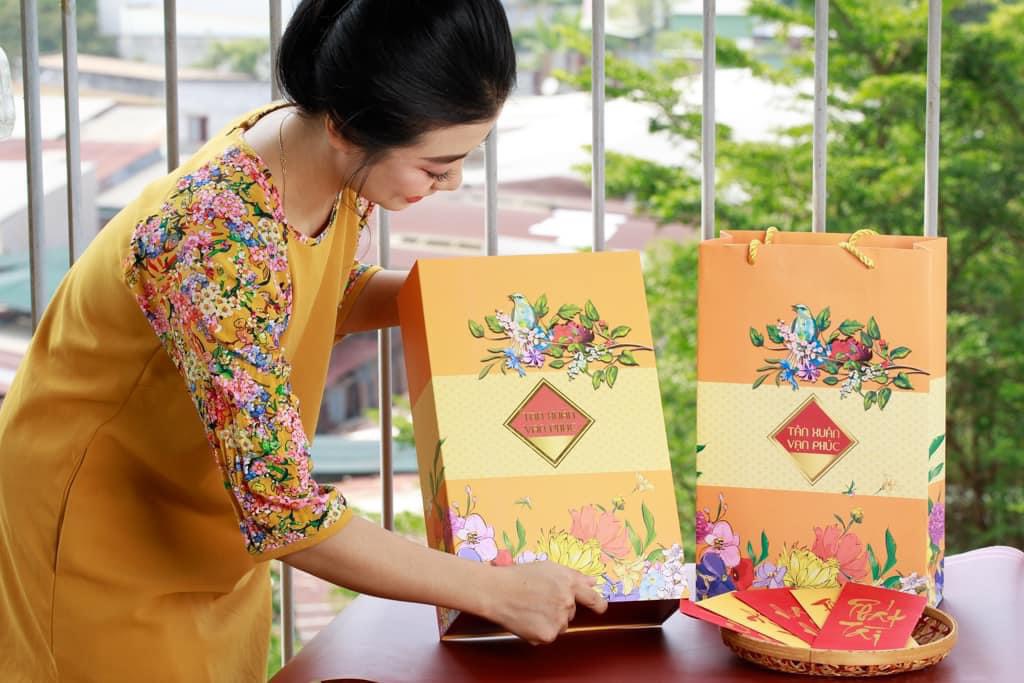 2. Set quà Tết 2024 hộp giấy cao cấp "Tân Xuân Vạn Phúc" phong cách Hoa Cỏ Mùa Xuân.
