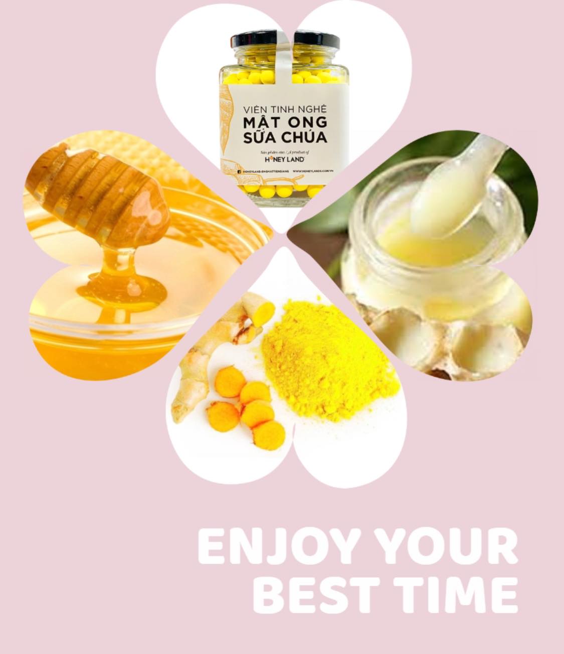Hãy để những hoài niệm xưa tiếp thêm sức mạnh, còn HoneyLand sẽ luôn đồng hành cùng bạn để tiếp thêm năng lượng đó. Chính vì vậy, HoneyLand xin gửi gắm đến bạn, Viên tinh nghệ Mật ong Sữa ong chúa. Không những bổ trợ sức khỏe trong những ngày mưa nắng bất chợt, mà còn có tác dụng rất tốt trong việc làm đẹp cả 4 mùa xuân, hạ, thu, đông.