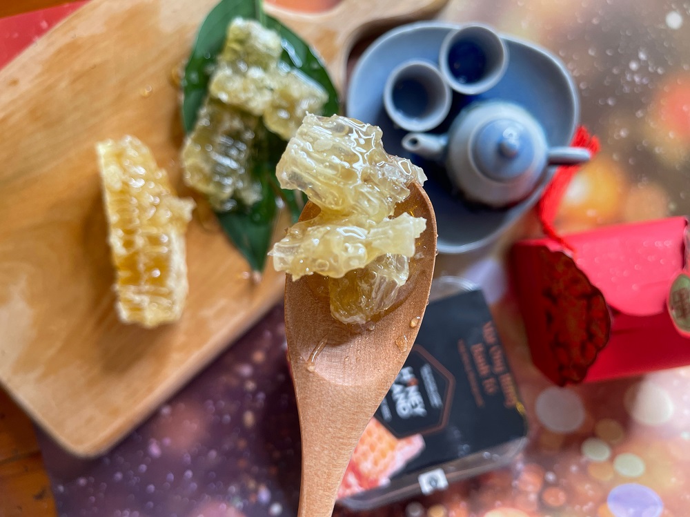 Và khi thưởng thức: Hoặc là ăn trực tiếp, nhai luôn cả phần sáp ong, hoặc kết hợp ăn cùng trái cây, bánh Sandwich… hoặc xắn từng miếng nhỏ bỏ vào tách trà và nhâm nhi.
