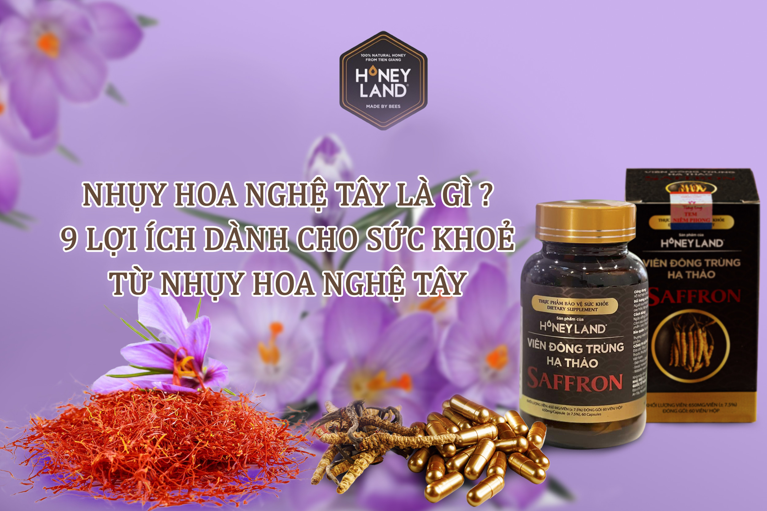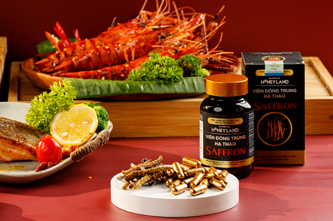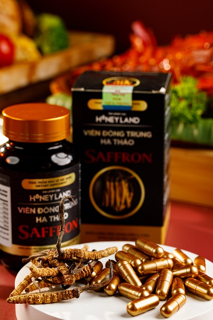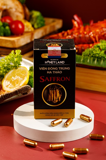 Viên uống Đông Trùng Hạ Thảo Saffron HoneyLand - sự kết hợp của nhiều loại thảo dược quý như Nhụy hoa nghệ tây, Đông trùng hạ thảo, Xạ đen,...