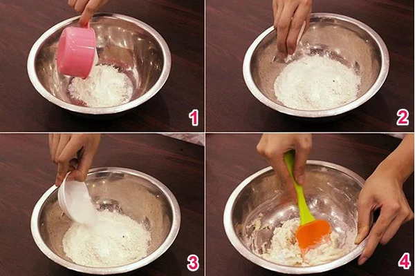 Bước 1: Trộn bột và nhào bột, tạo khuôn bánh: