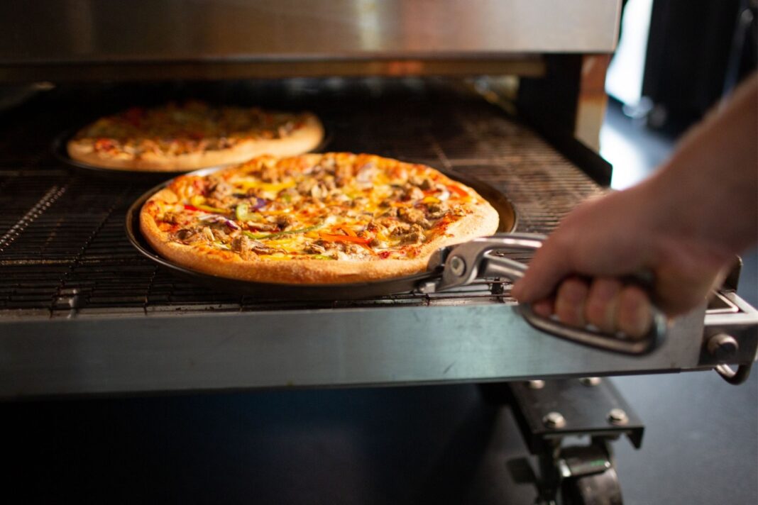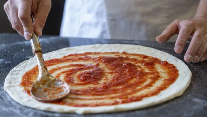 Bước 6: Khi pizza chín, lấy ra khỏi lò và rắc loại topping yêu thích lên trên.