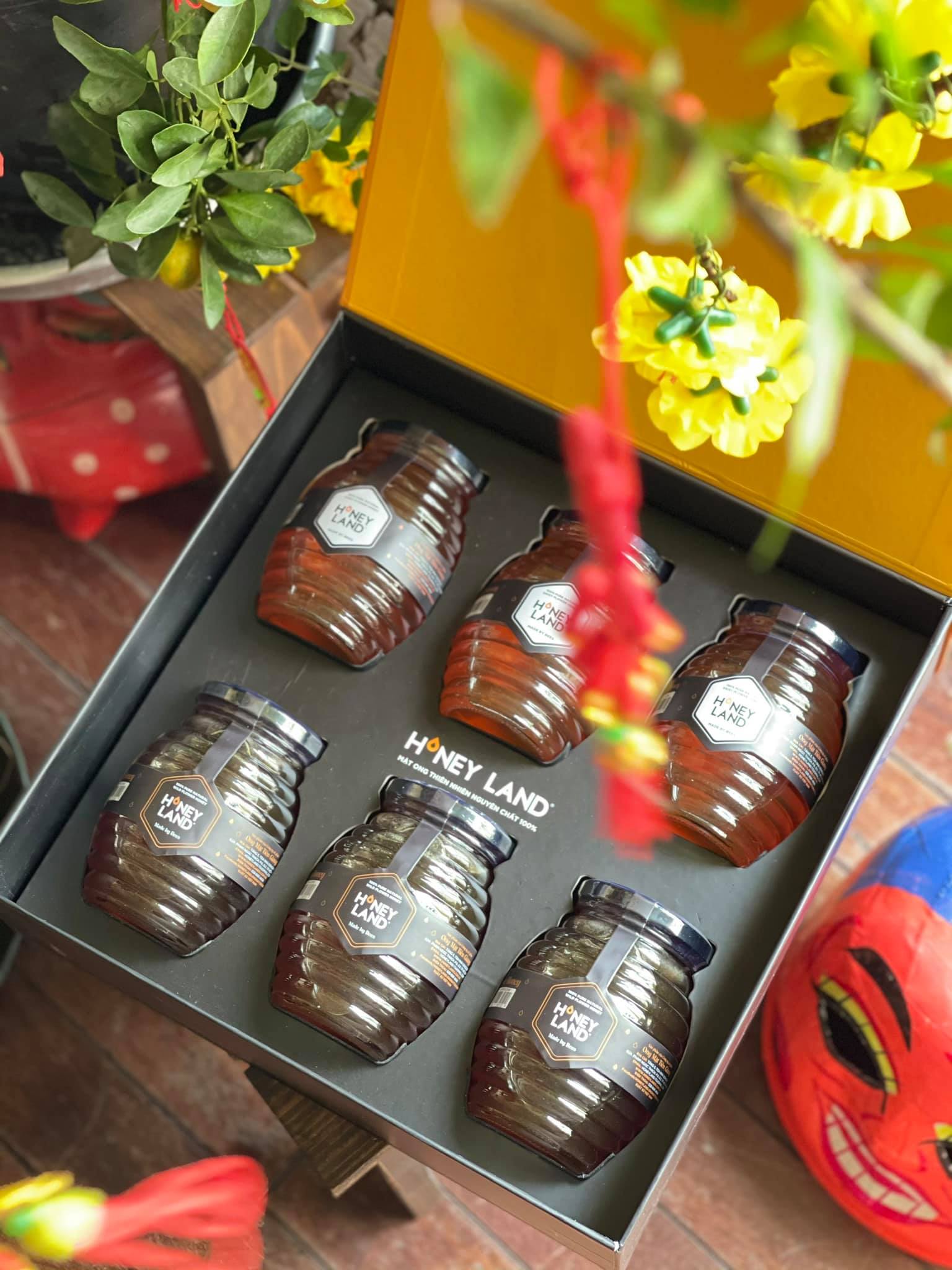 Tết này, hãy để HONEY LAND cùng bạn gửi đến người thân một mùa Xuân Tân Sửu ngọt ngào bằng thức quà được tinh tuyển từ những nguyên liệu thượng hạng – Set combo 6 hũ Mật Ong HoneyLand. Tất cả được sắp xếp tinh tế, cẩn thận trong chiếc hộp may mắn, như một biểu tượng cho những lời chúc tốt đẹp và phù hợp nhất.