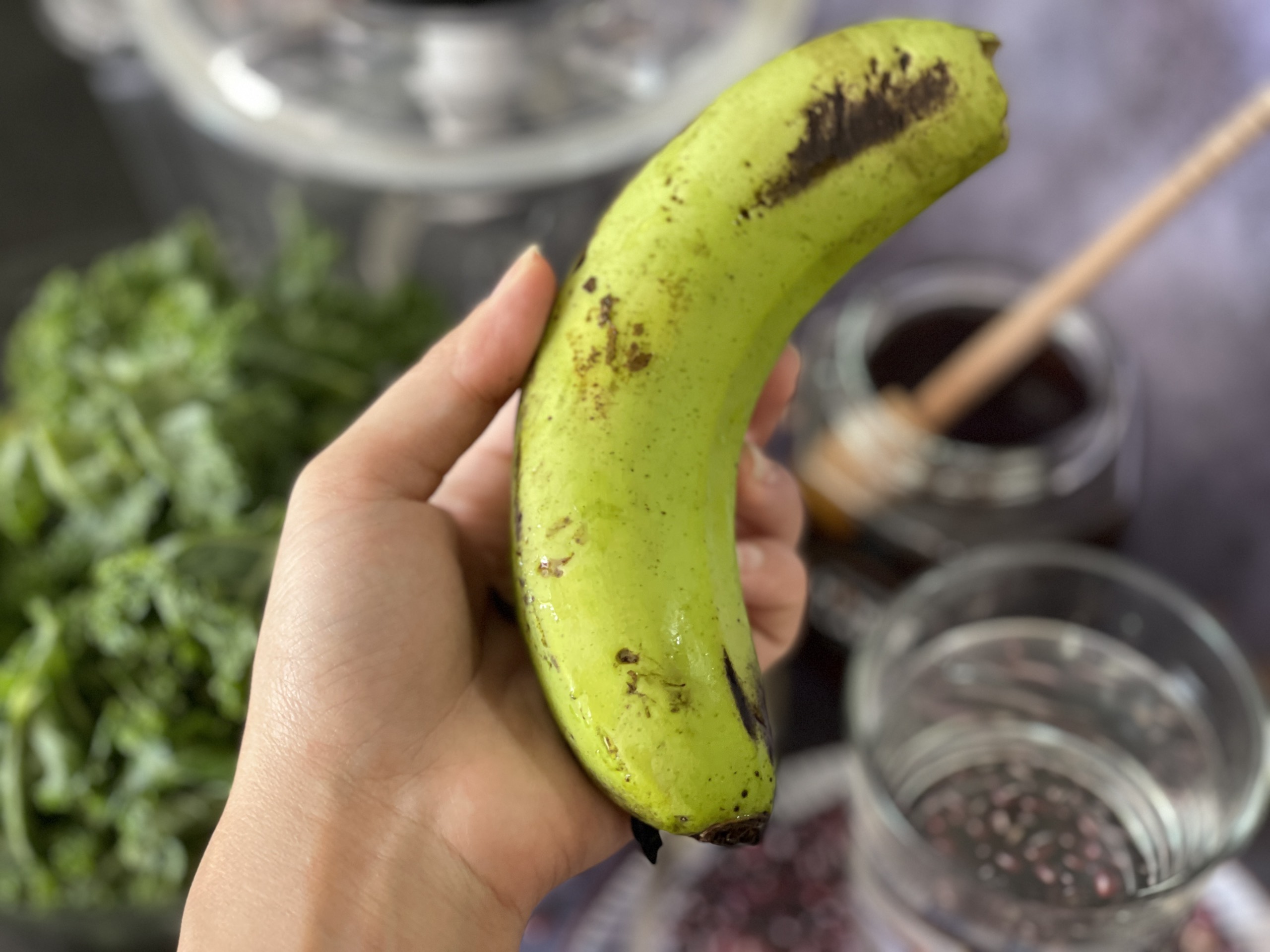 Và cách để thưởng thức cải kale được nhiều người ưa chuộng, đó chính là kết hợp làm sinh tố với các loại trái cây, ví dụ như với chuối. Chuối, biết đến là một loại thực phẩm bổ máu và làm giảm bệnh thiếu máu bằng nguồn sắt có trong chuối. Là thực phẩm có thể làm giảm huyết áp, tăng cường sức khỏe tim mạch, chuối có một số đặc tính thân thiện với người muốn giảm cân bởi nó vẫn cung cấp năng lượng để đảo bảo sức khoẻ của người ăn kiêng/giảm cân, giúp họ không bị mất sức trong quá trình kiêng khem đó.