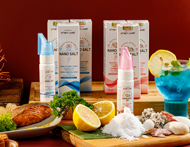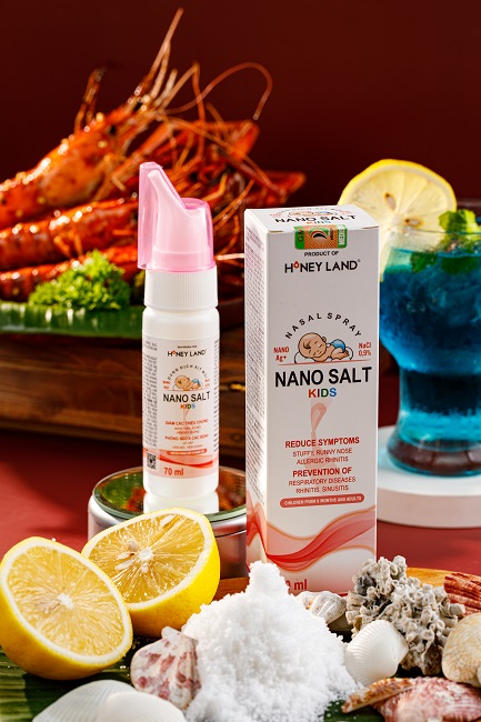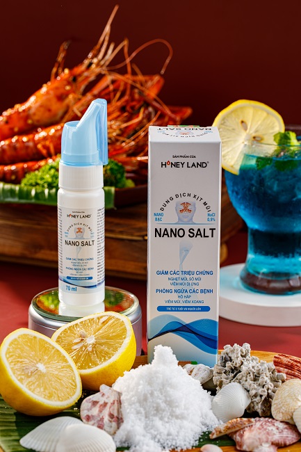 Dung Dịch Xịt Mũi Nano Salt HoneyLand - có chứa thành phần chính là muối nano bạc, giúp diệt khuẩn đến 99,99%, tạo lớp mang giúp bảo vệ khoang mũi bởi các tác nhân bên ngoài