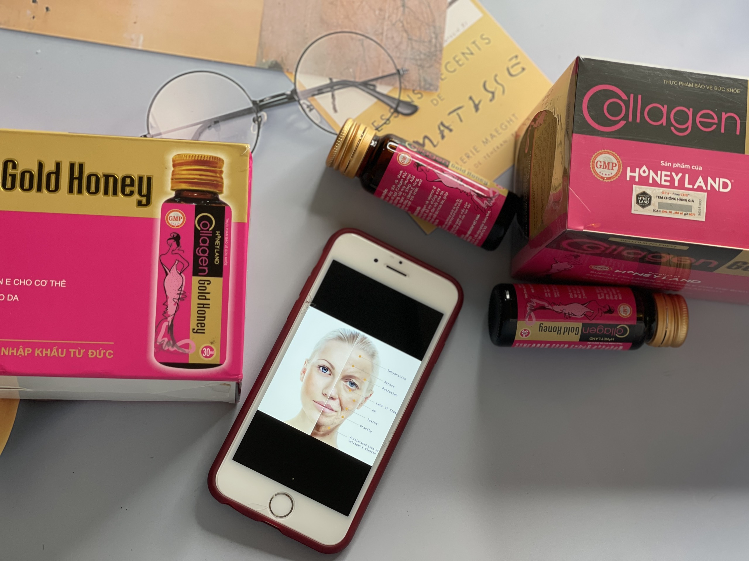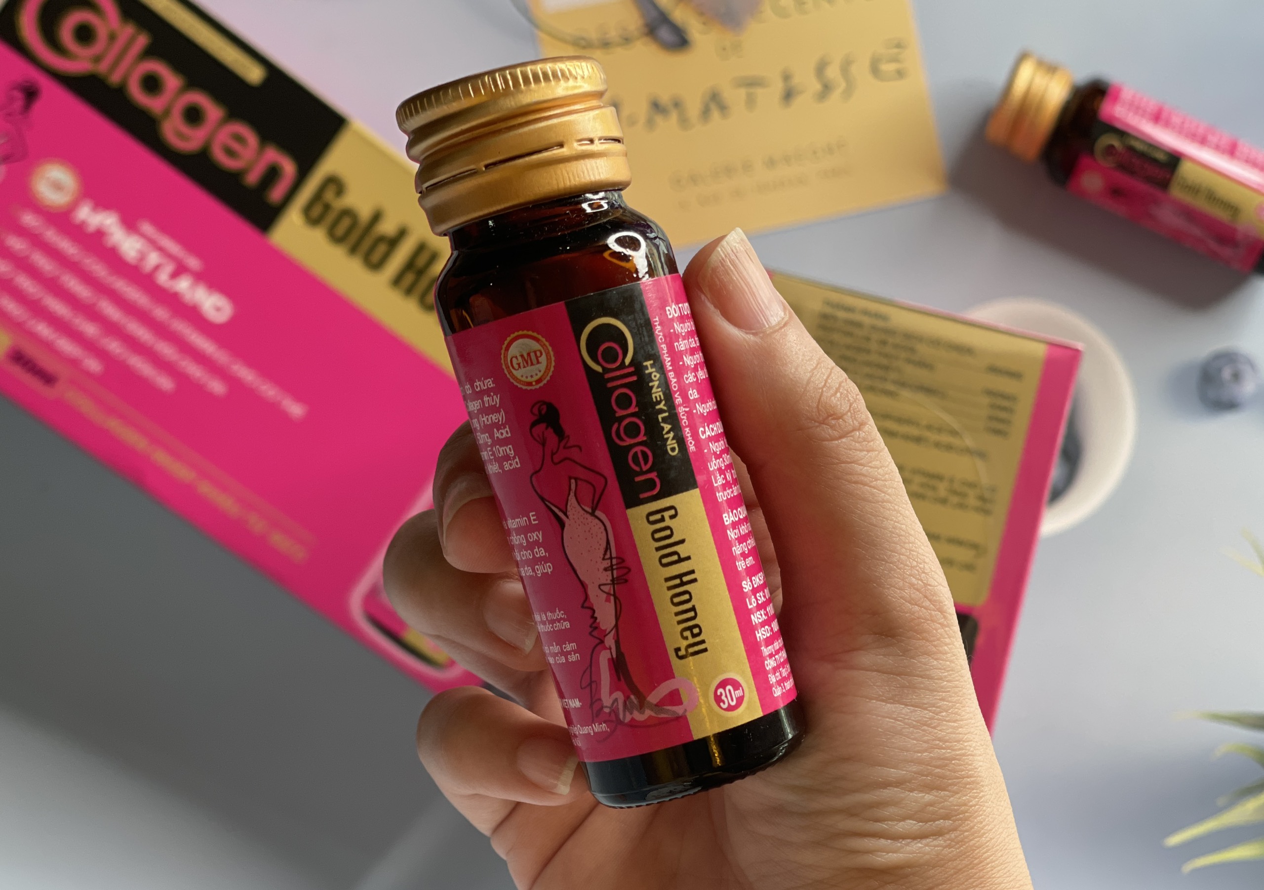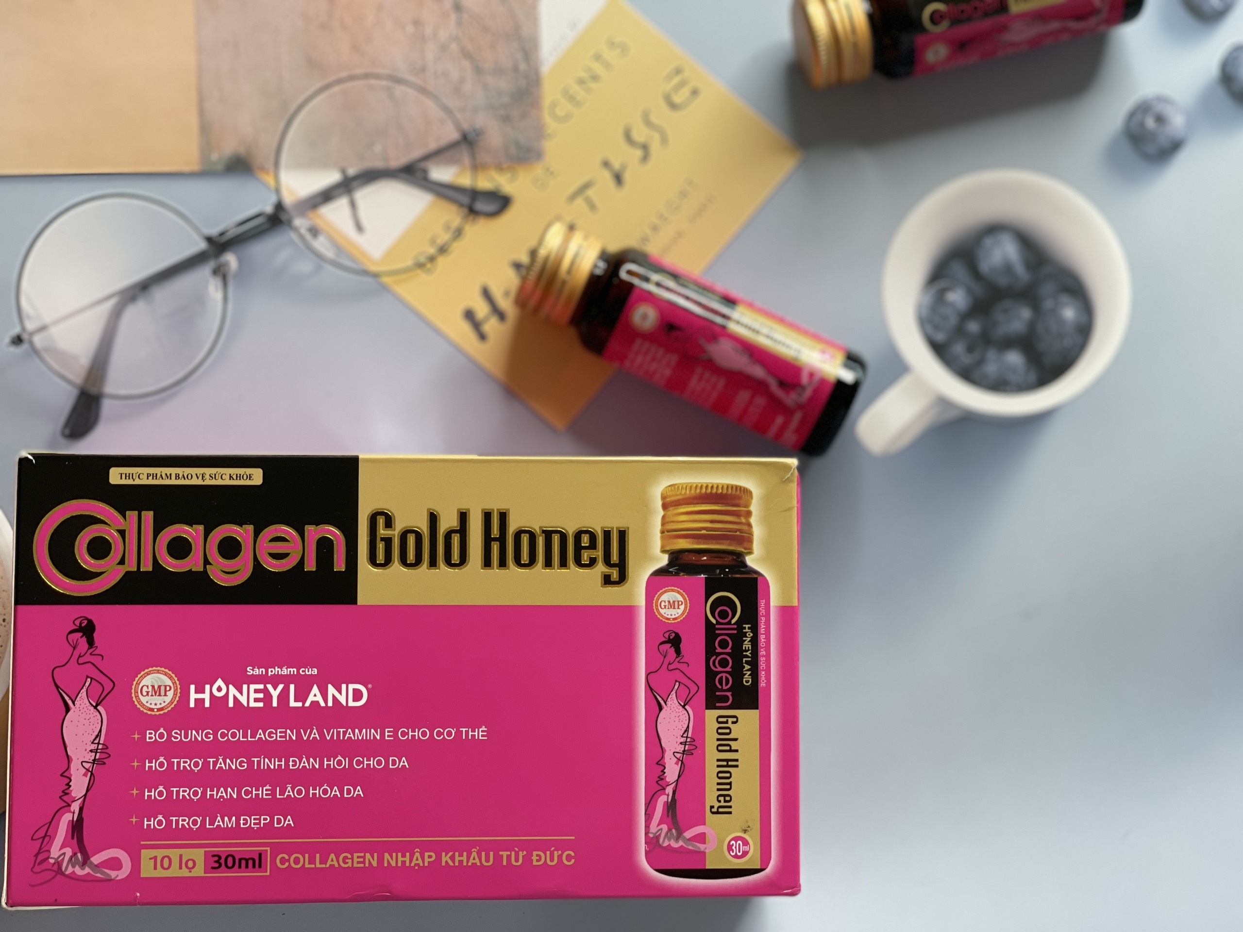 Và nếu bạn đang phân vân lựa chọn giữa các dòng collagen để uống, thì Honeyland xin giới thiệu Collagen Gold Honey dạng nước, tính an toàn cao và hiệu quả hấp thụ dưỡng chất vào cơ thể cao nhất so với các dạng Collagen khác.