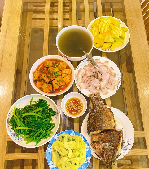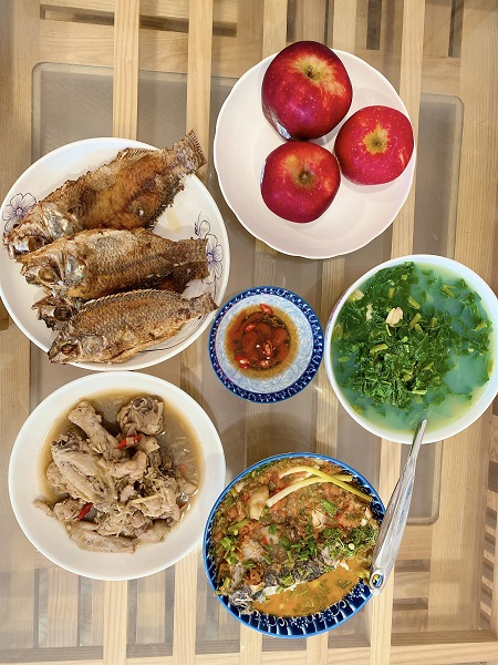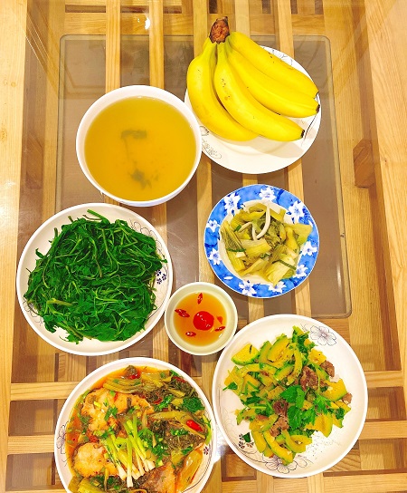 Mâm cơm tuy đơn giản, nhưng vẫn đảm bảo đầy đủ dinh dưỡng.