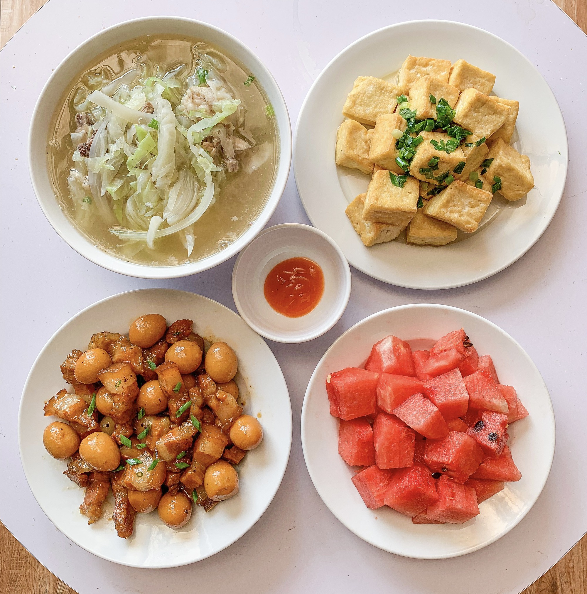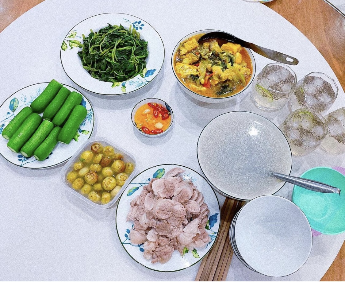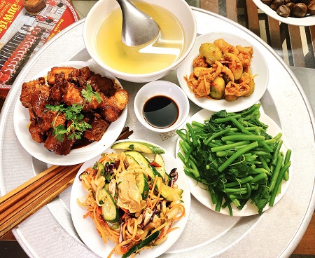 Mâm cơm Việt hàng ngày đơn giản, dễ làm, tiết kiệm thời gian.