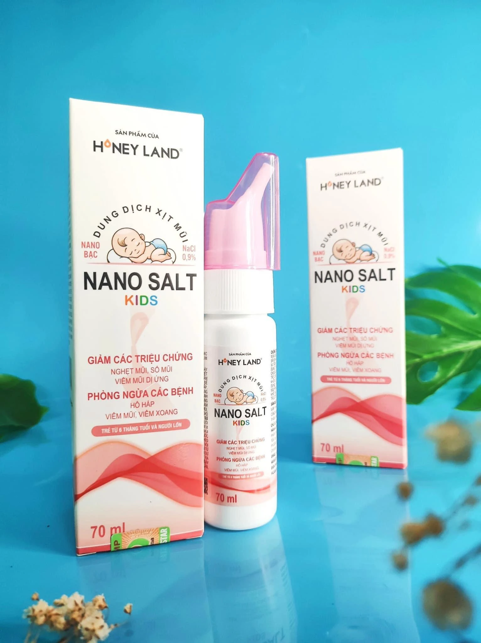Bên cạnh Dung Dịch Xịt mũi Nano Salt, HoneyLand còn có thêm dòng sản phẩm Dung Dịch Xịt mũi Nano Salt Kids dành riêng cho trẻ em.
