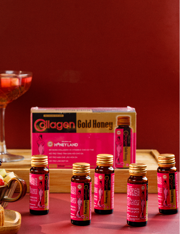 Honeyland giới thiệu dòng sản phẩm mới là collagen dạng nước - Collagen Gold Honey với hàm lượng collagen thủy phân cao 2600mg, kết hợp cùng mật ong nguyên chất, tạo ra một thức uống thần dược, giúp cải thiện làn da một cách rõ rệt